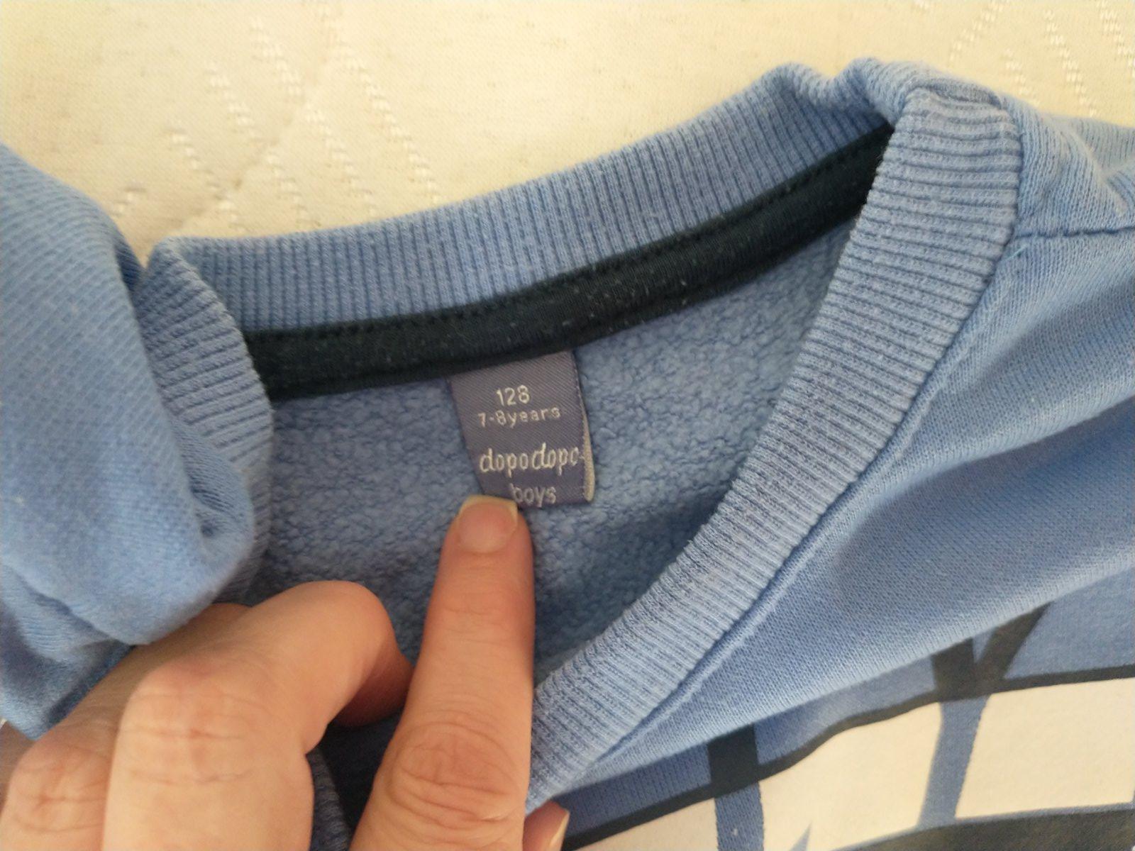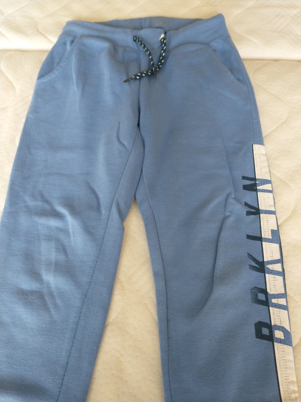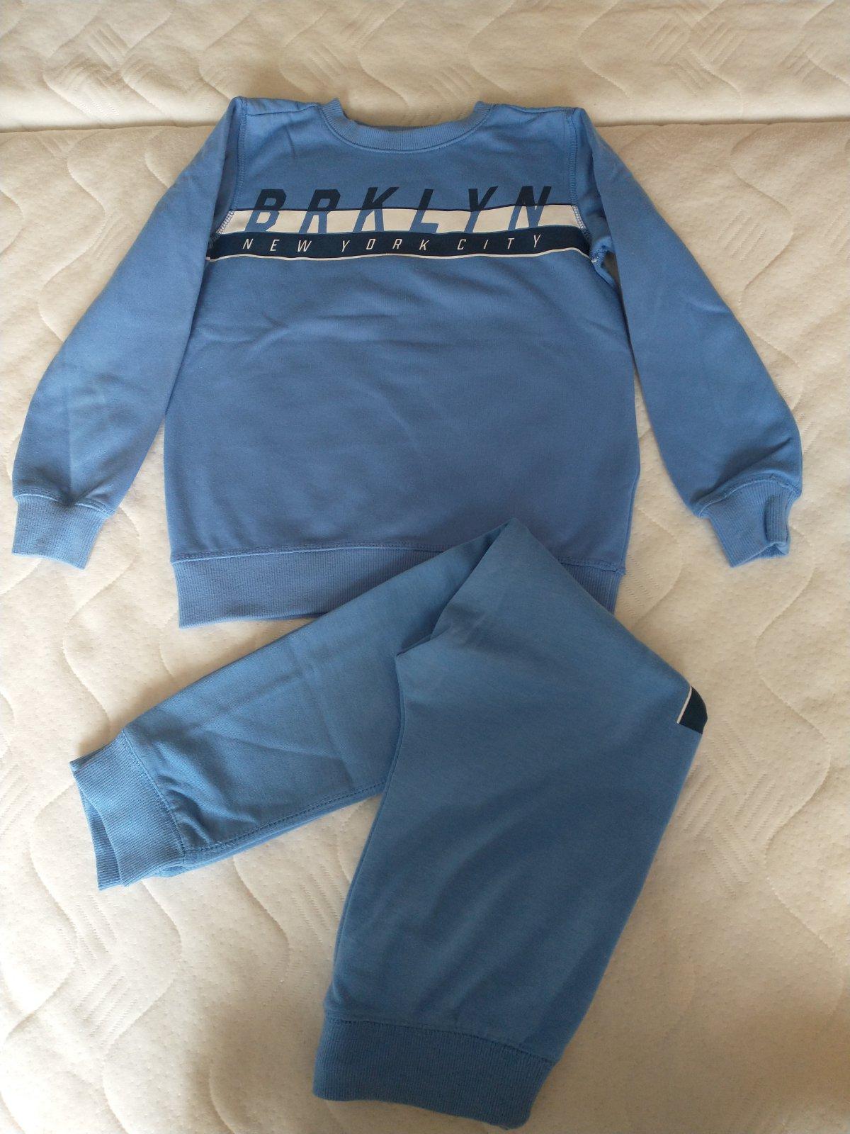 Súprava bledomodrá, nosená, kolienka bledšie, inak bez poškodenia.