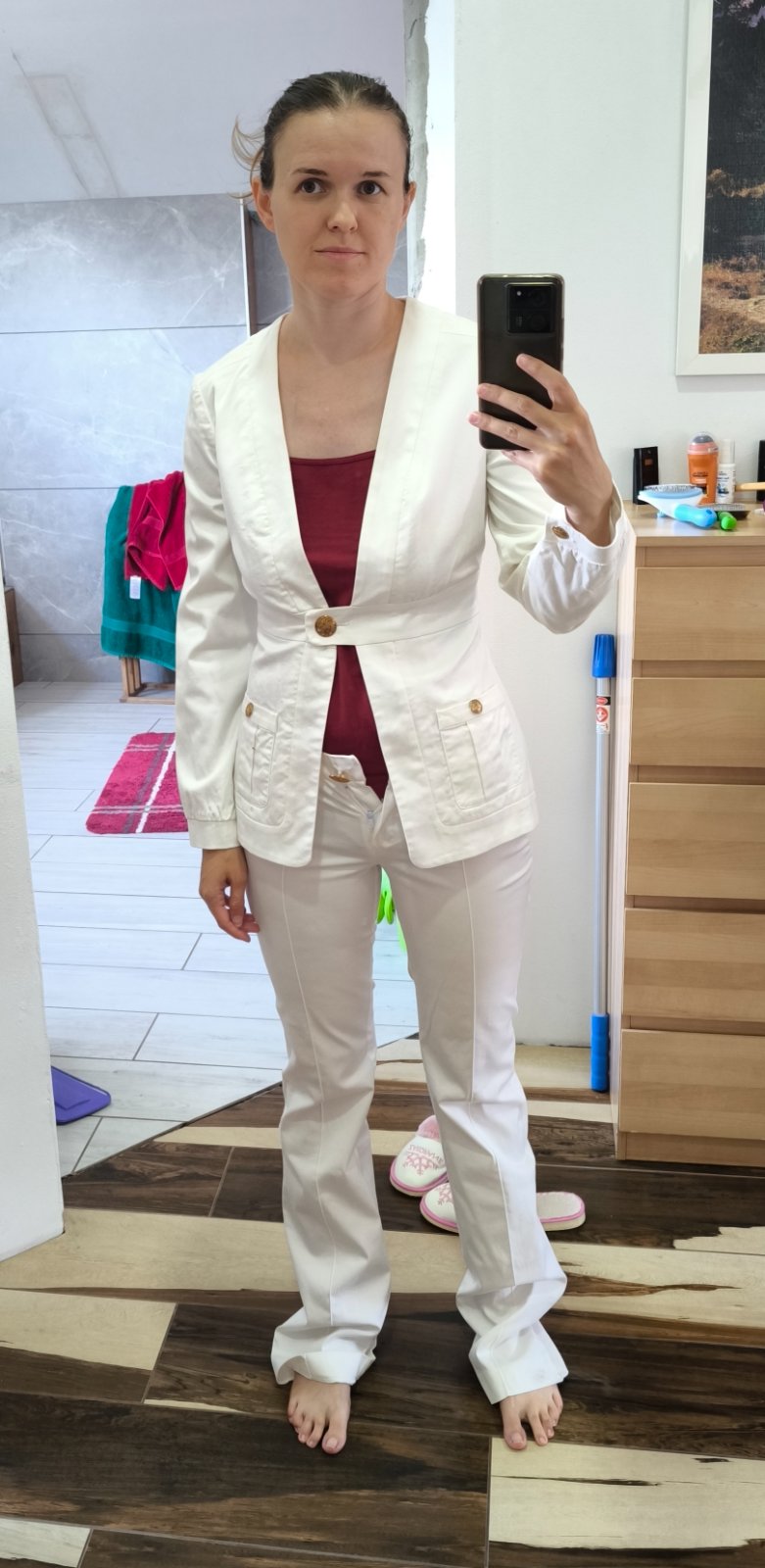 Predám pekný kostymcek...u mňa nebol vôbec noseny a žiaľ už ho nezapnem ... odporúčam skôr na vysoké baby alebo sa dajú nohavice skrátiť ... rozmery sú pri fotkách