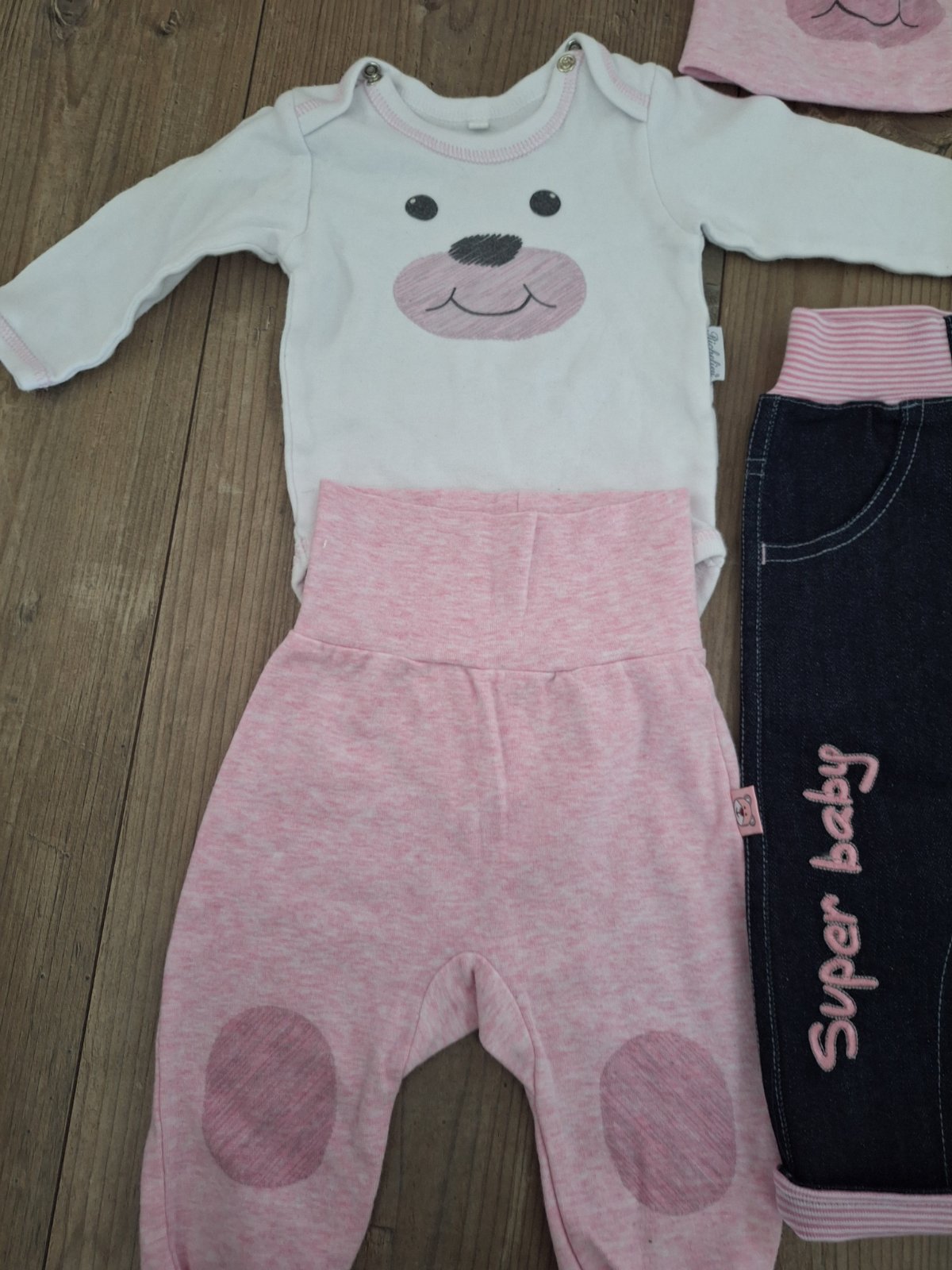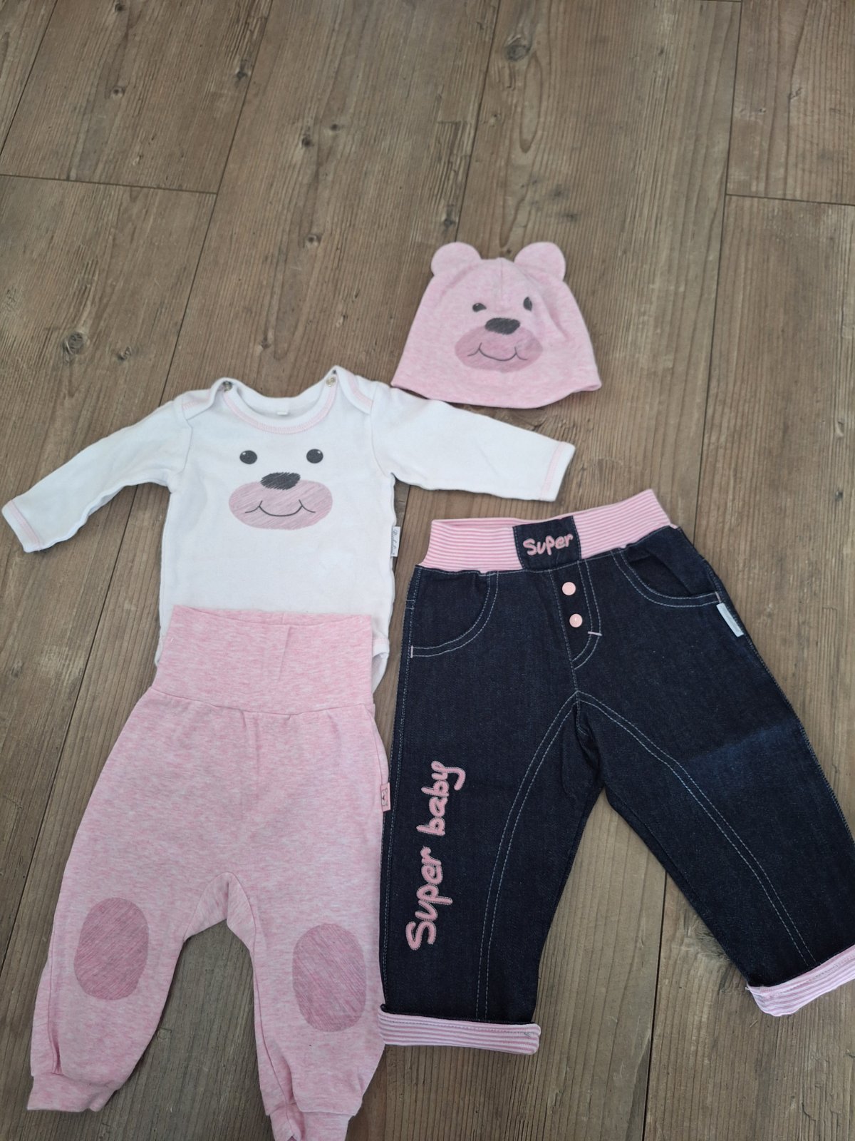 Detska súprava par krát oblecena. Čiapka ma zle presity jeden svik, my sme ju nosili aj tak,ale nie je problem prežiť. Veľkosť 68