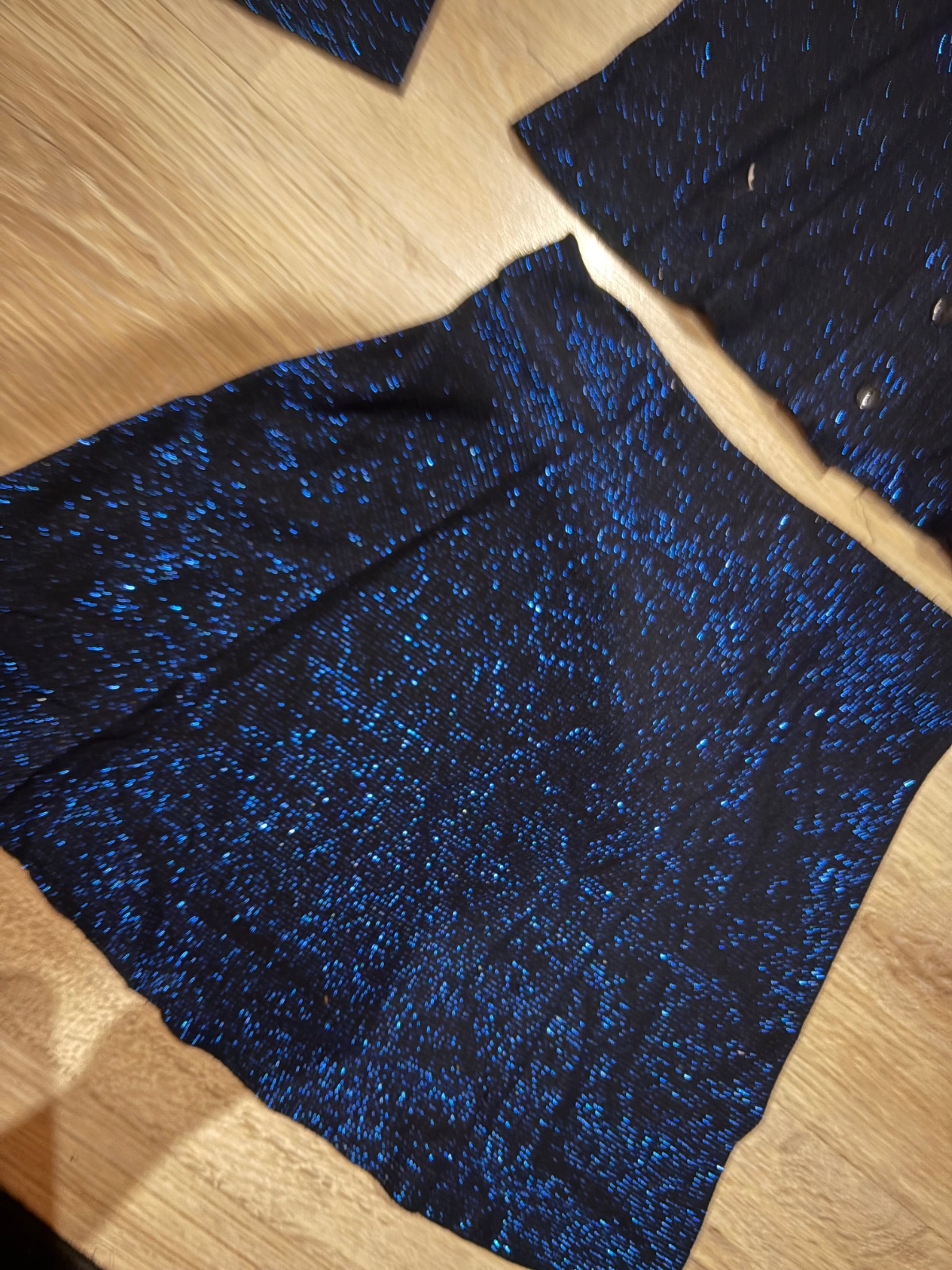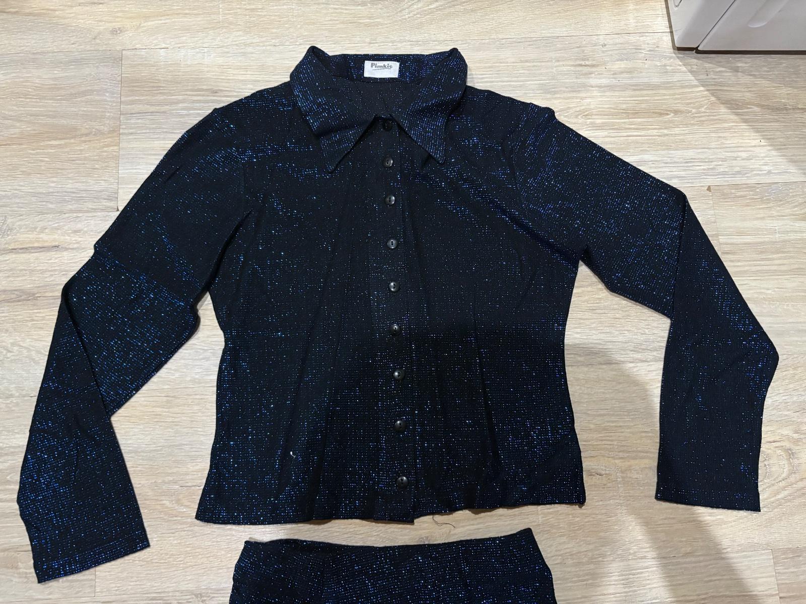 predam pekny ligotavy komplet dobry stav kosela,bluska celkova dlzka52cm,sirka44,6cm..od krku po rukav73cm,od pleca59cm,,sukna pas31cm,dlzka39,5cm...posta1e obycajne moj skr krab
