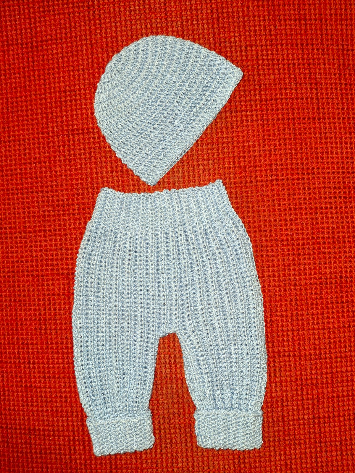 Úplne nové uháčkované kamašle a čiapočka , jemná príjemná modrá vlna
