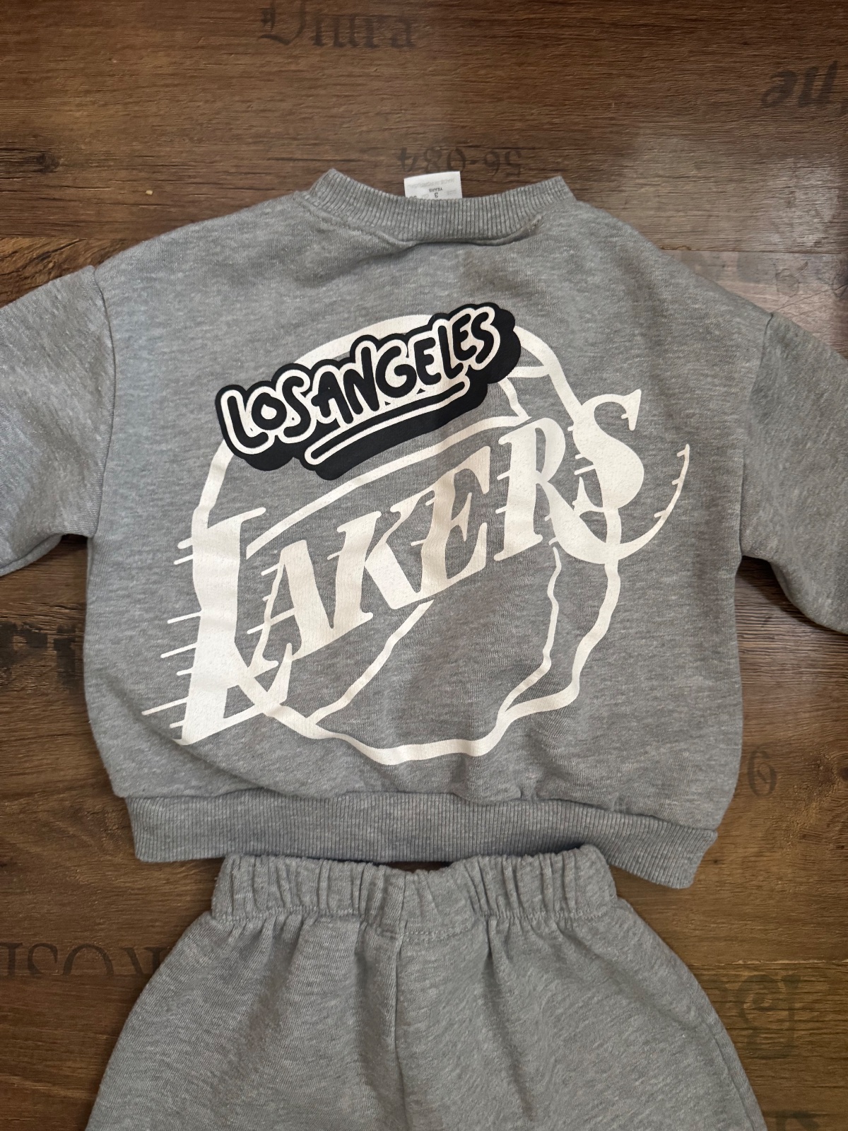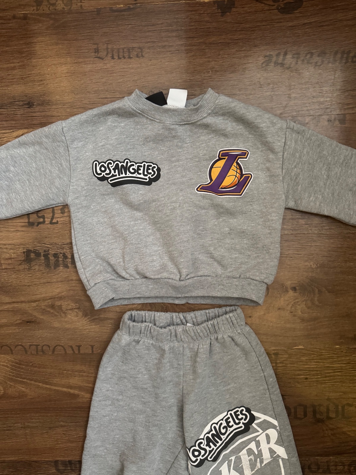 Ponúkam krásnu sivú teplákovú súpravu Zara s motívom NBA Lakers. Veľkosť je síce uvedená na 3 roky teda 98 ale je menšia, doporučujem tak na 2-3 roky. Bola nosená ale naďalej v peknom stave. Poštovné podľa taríf.