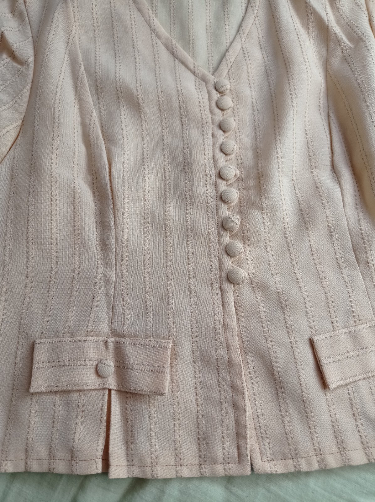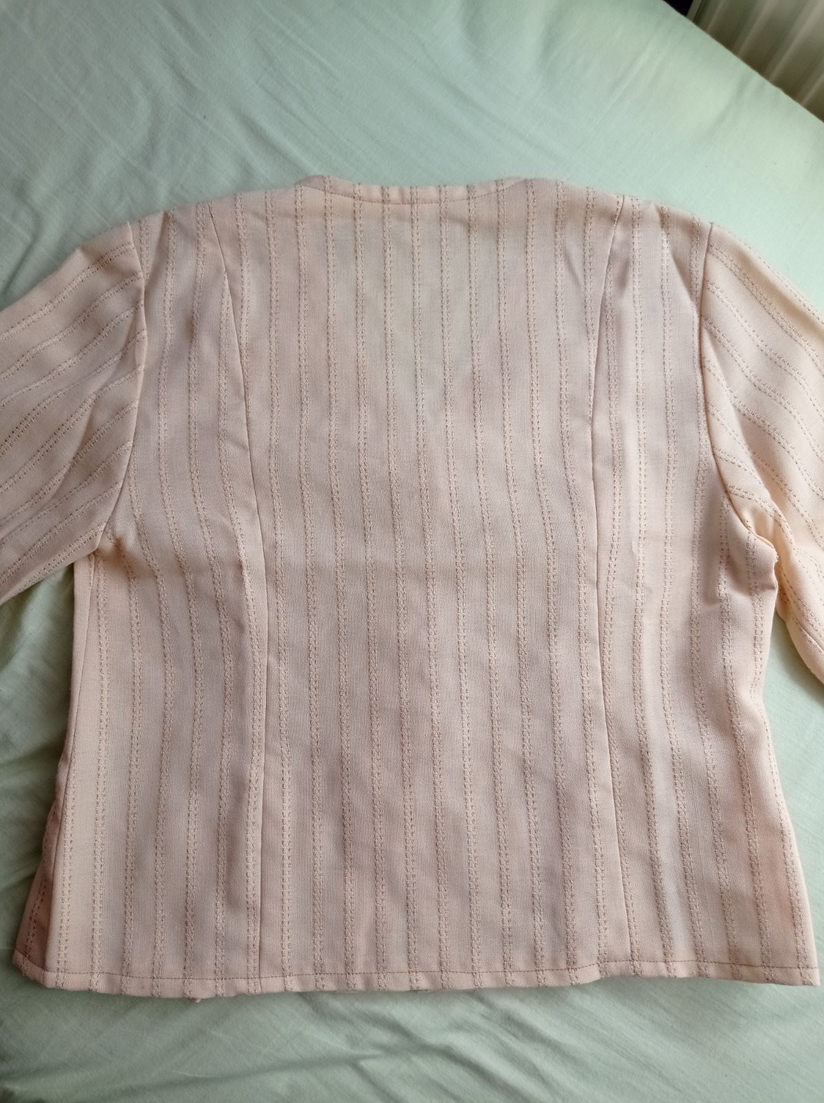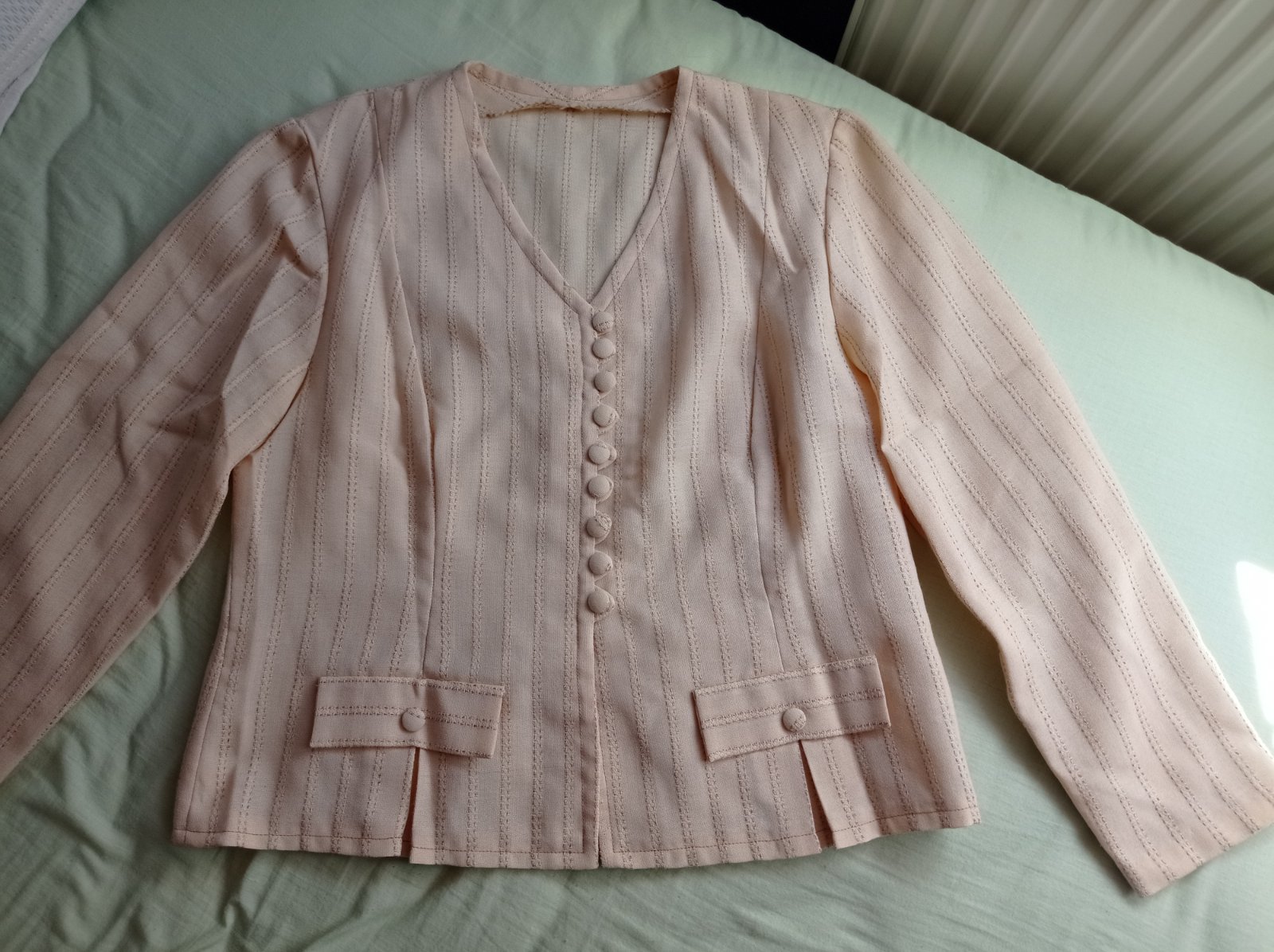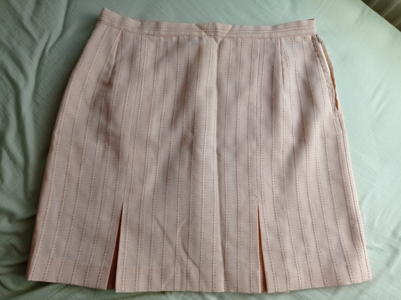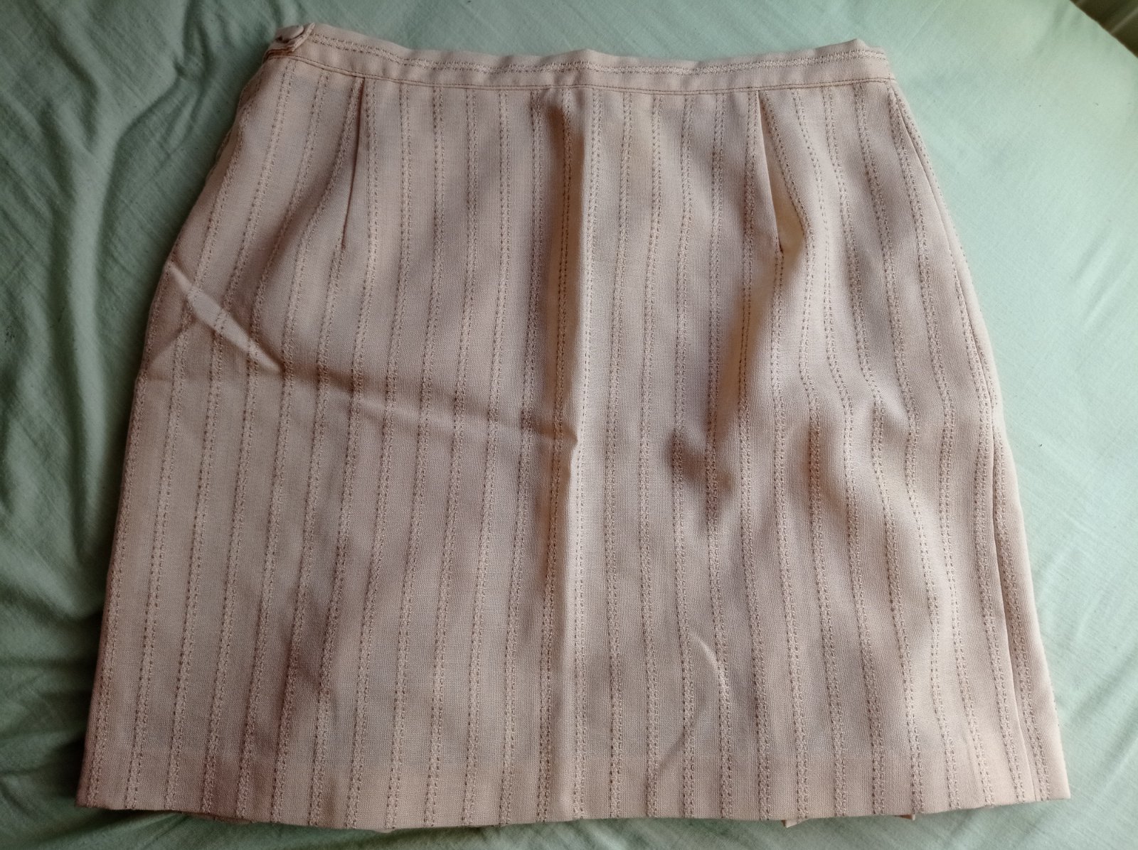Predám tento chutný kostým veľkosti +- 40/42, vhodný na jar a leto. Sukňa má 46cm dĺžku, pás 40,5cm. Vršok meria 54,5cm na dĺžku, 49cm na šírku pod pazuchami, rukávy 38cm od podpazušia a 56cm od ramena. Top stav, len sa mi trochu pokrčil po sťahovaní sa.