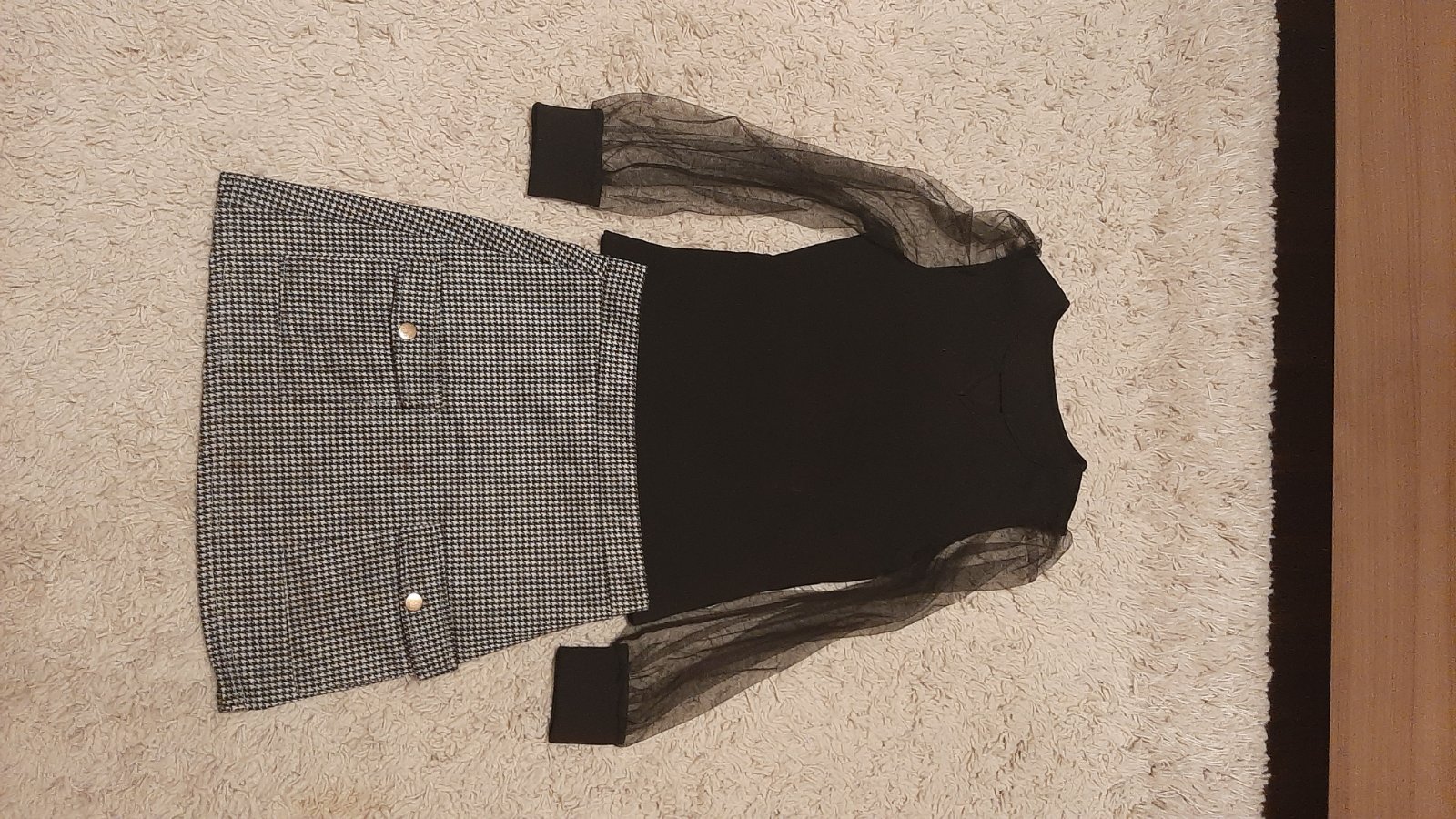 Blúzka veľkosť 10 Sukňa veľkosť 12 Nosené spolu Výborný stav Cena samostatne 4,5E/ks Blúzka:Dĺžka od pleca 48cm Šírka cez prsia 41,5cm Dĺžka rukávu od pleca najmenej 36cm ...