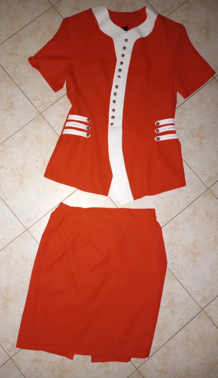 Dámsky suknovy kostym. Sýto červená farba na foto je zlý odtieň v prípade záujmu premeriam.