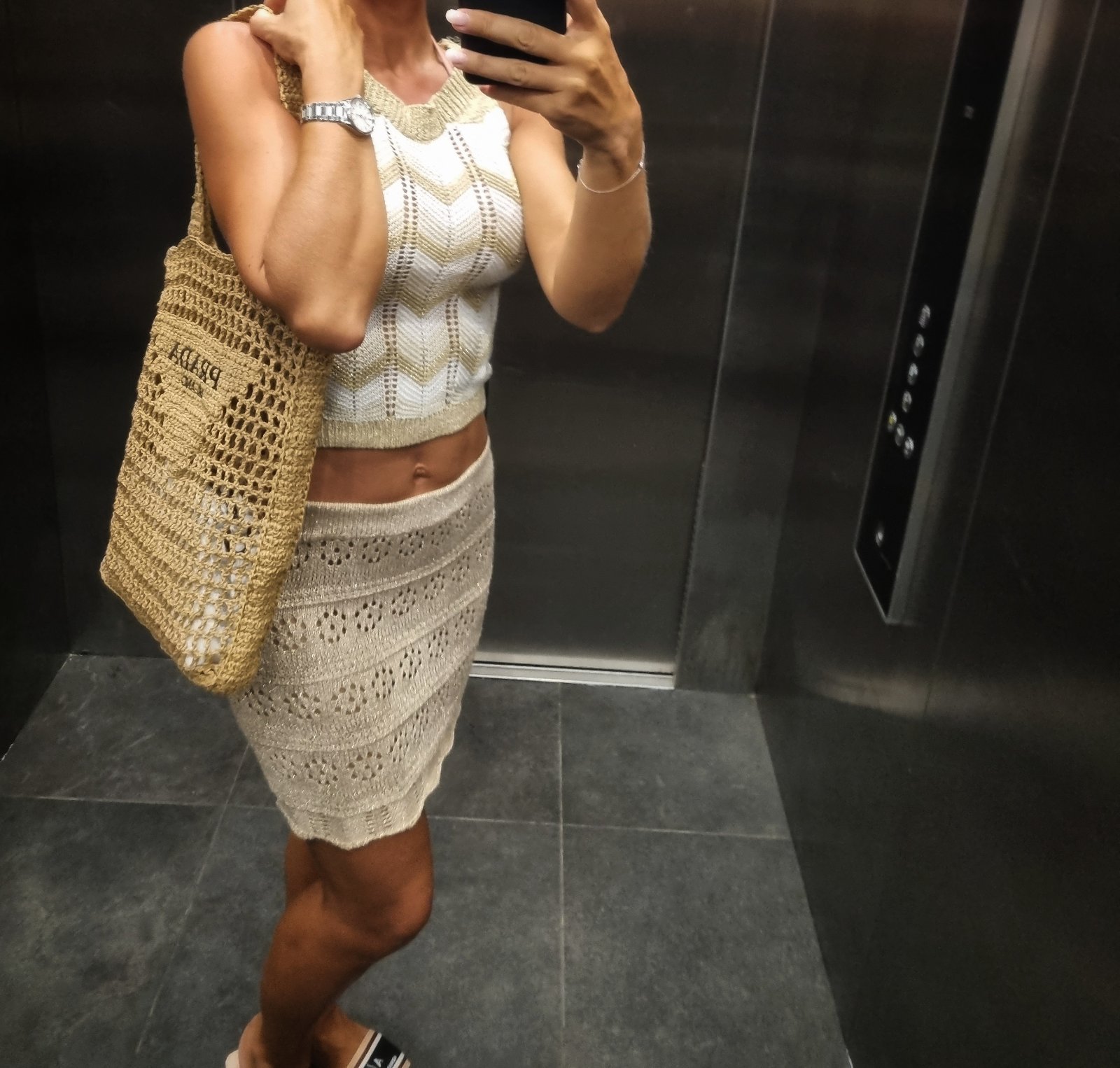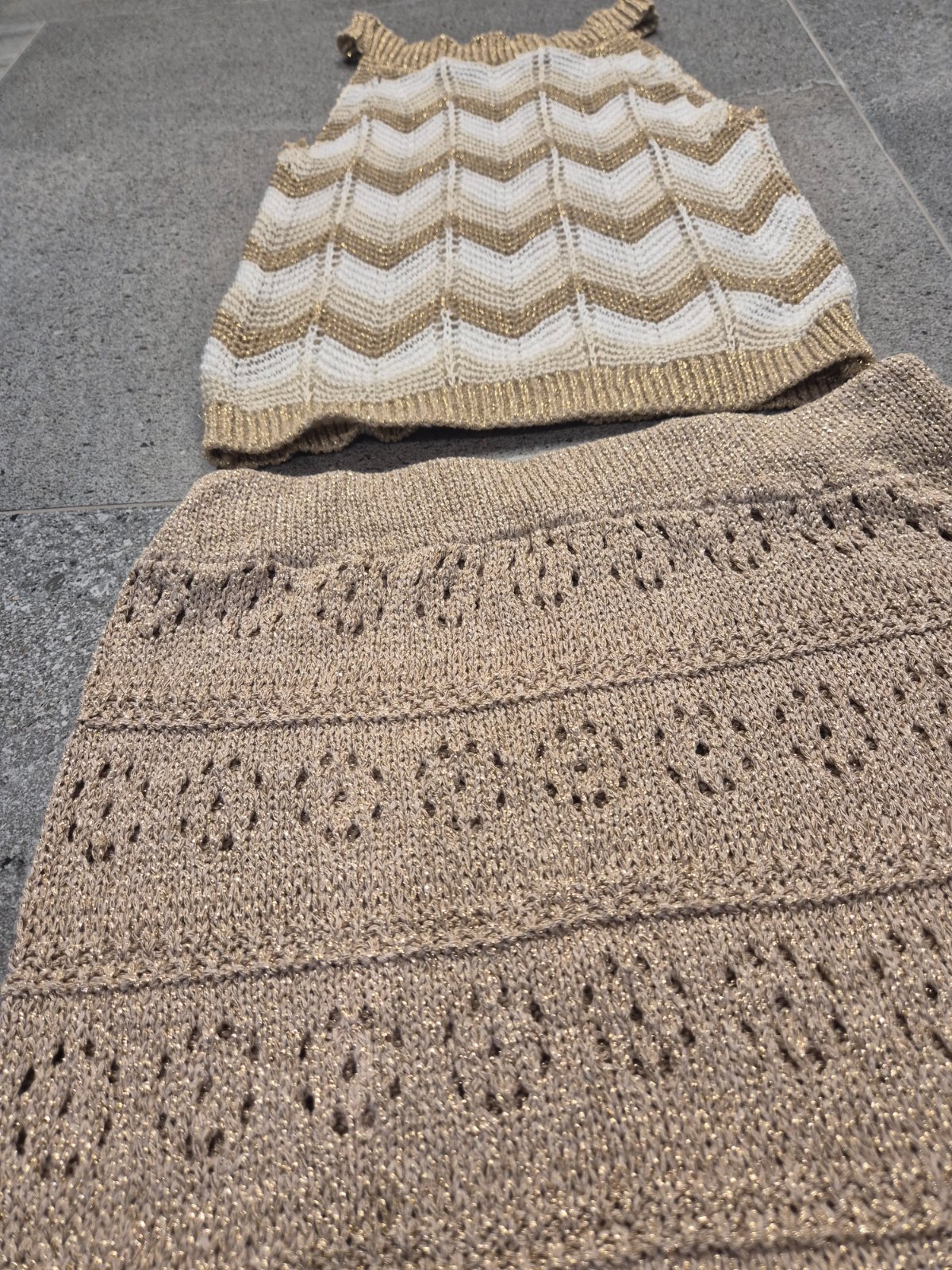 Raz oblečený komplet top a sukňa