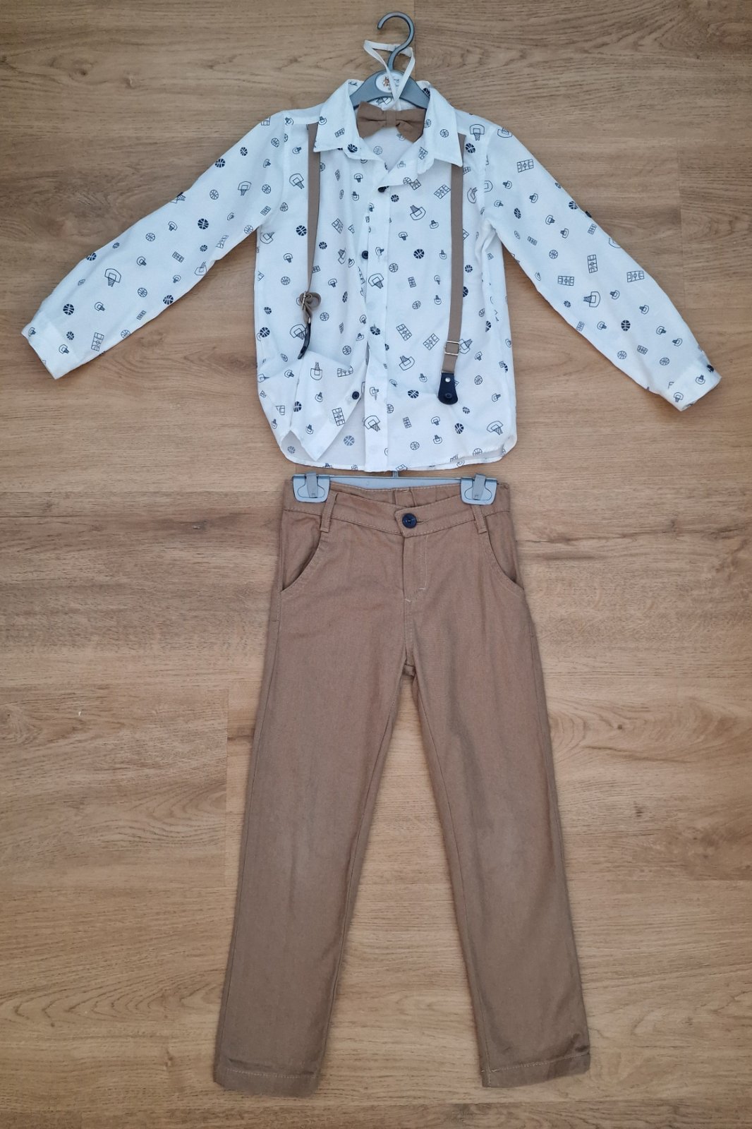 Predám slávnostnú súpravu na 5-6 rôčkov, cca 3x oblečená, super stav. Košieľka dĺžka 49 cm, rukáv 52 cm, si všitymi ozdobnými trakmi, motýlikom. Nohavice dĺžka 67 cm, pás 60 cm. Cena 5,99 € plus poštovné.