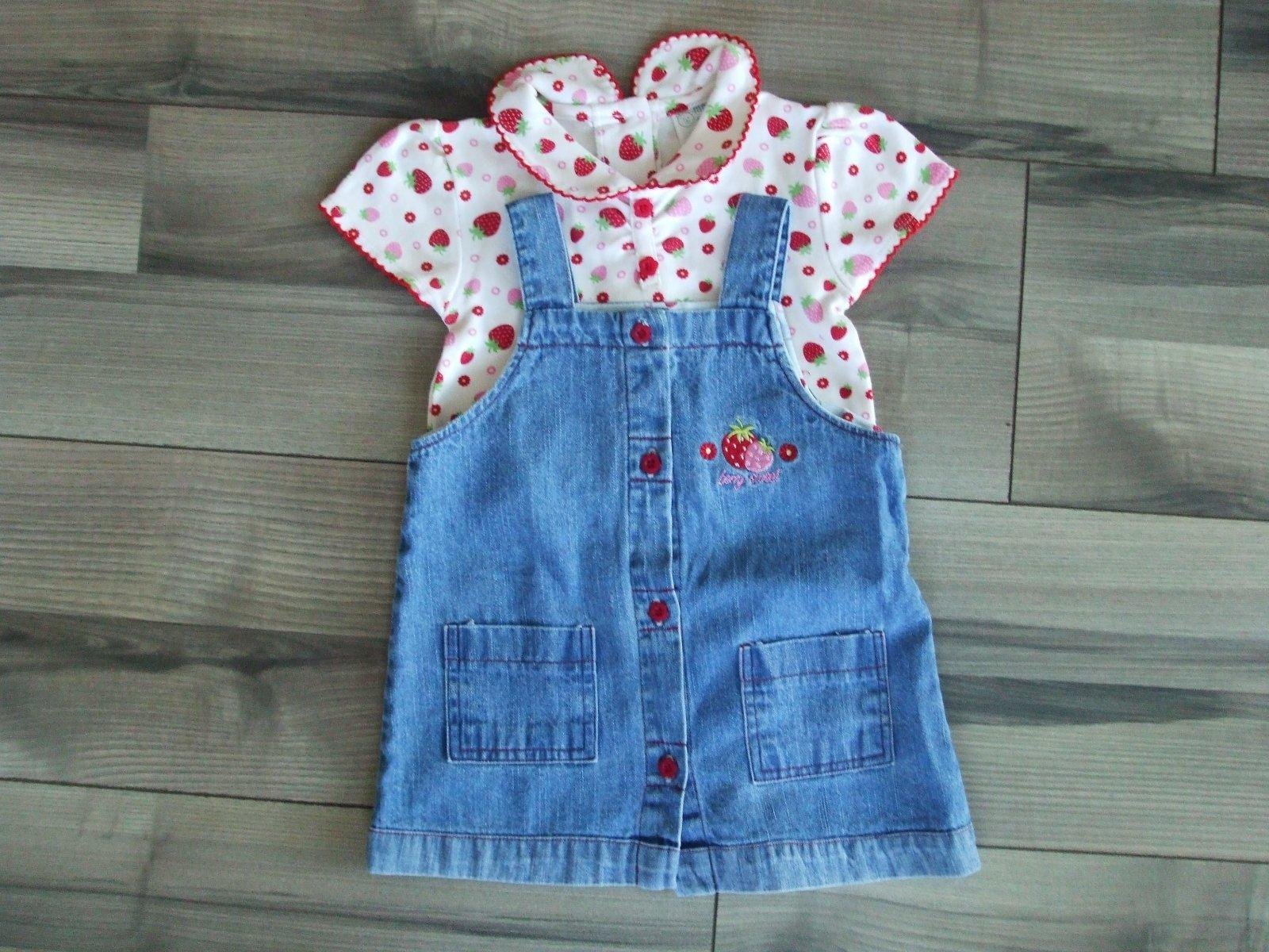 Rifľové šatočky s tričkom, píšu 3-6 mesiacov,ponosíte určite dlhšie, tričko je nepoužívané, iba opraté,má pekné sýte farby, šatočky sme nosili potom v lete od 9-14 mesiacov k leginkám aj ako šatovú sukničku k sandálkom. Dĺžka šatočiek je 33 cm. Cena 1,50 EURO+poštovné.