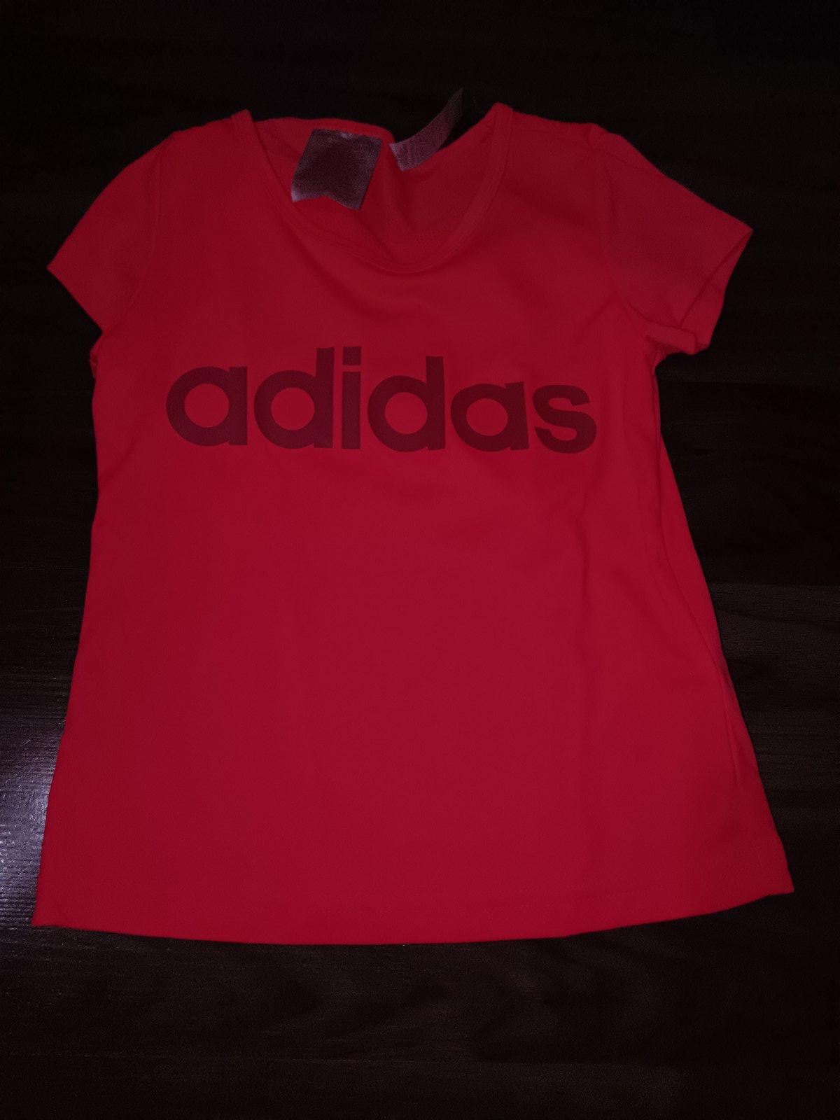 Krásna “tenisová” súprava Adidas- tričko a sukňokraťasky vo velkosti 104/110, kraťasy top stav, tričko nevyblednuté, bez žmolkov, aplikácia nepoškodená. Malá bodka vidí foto.
