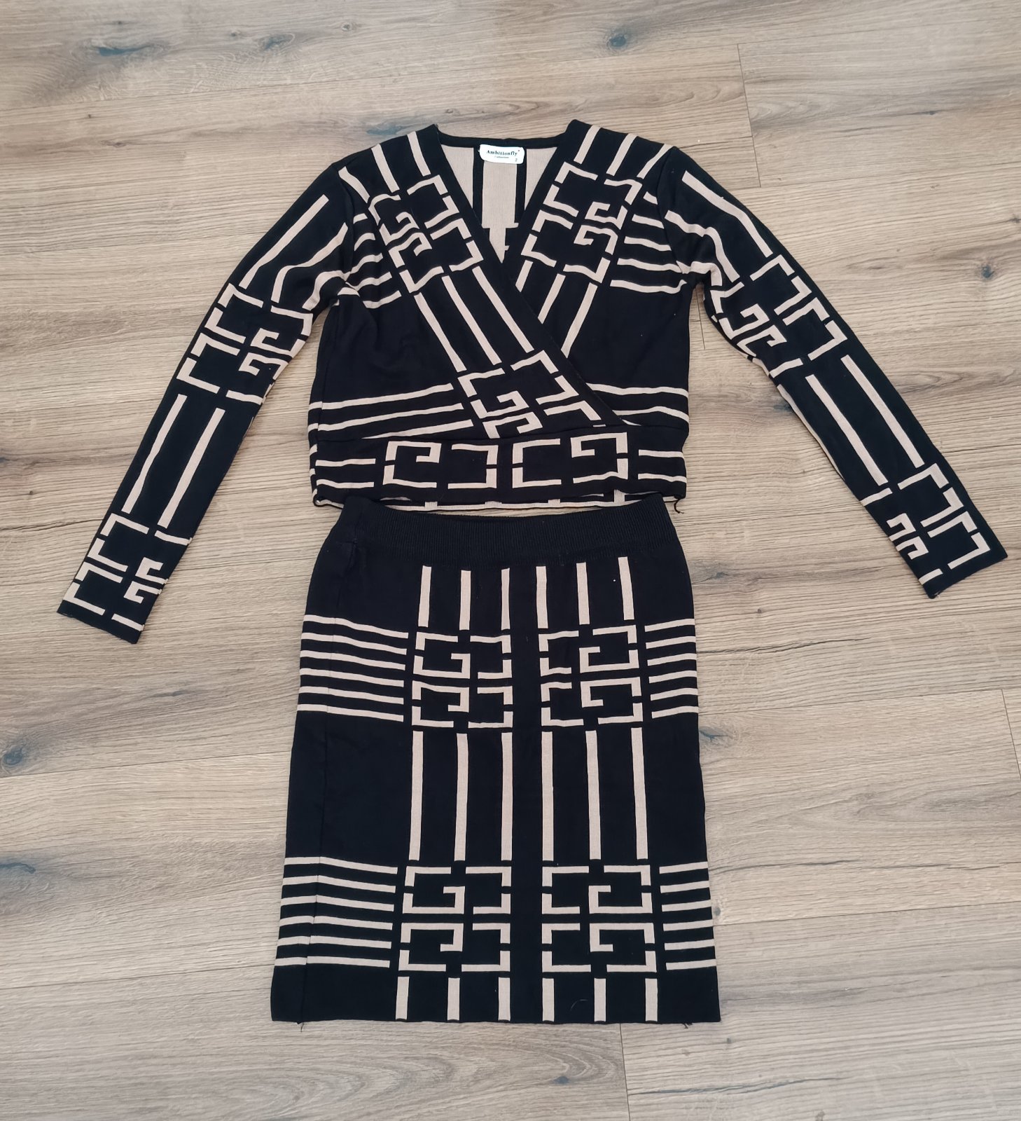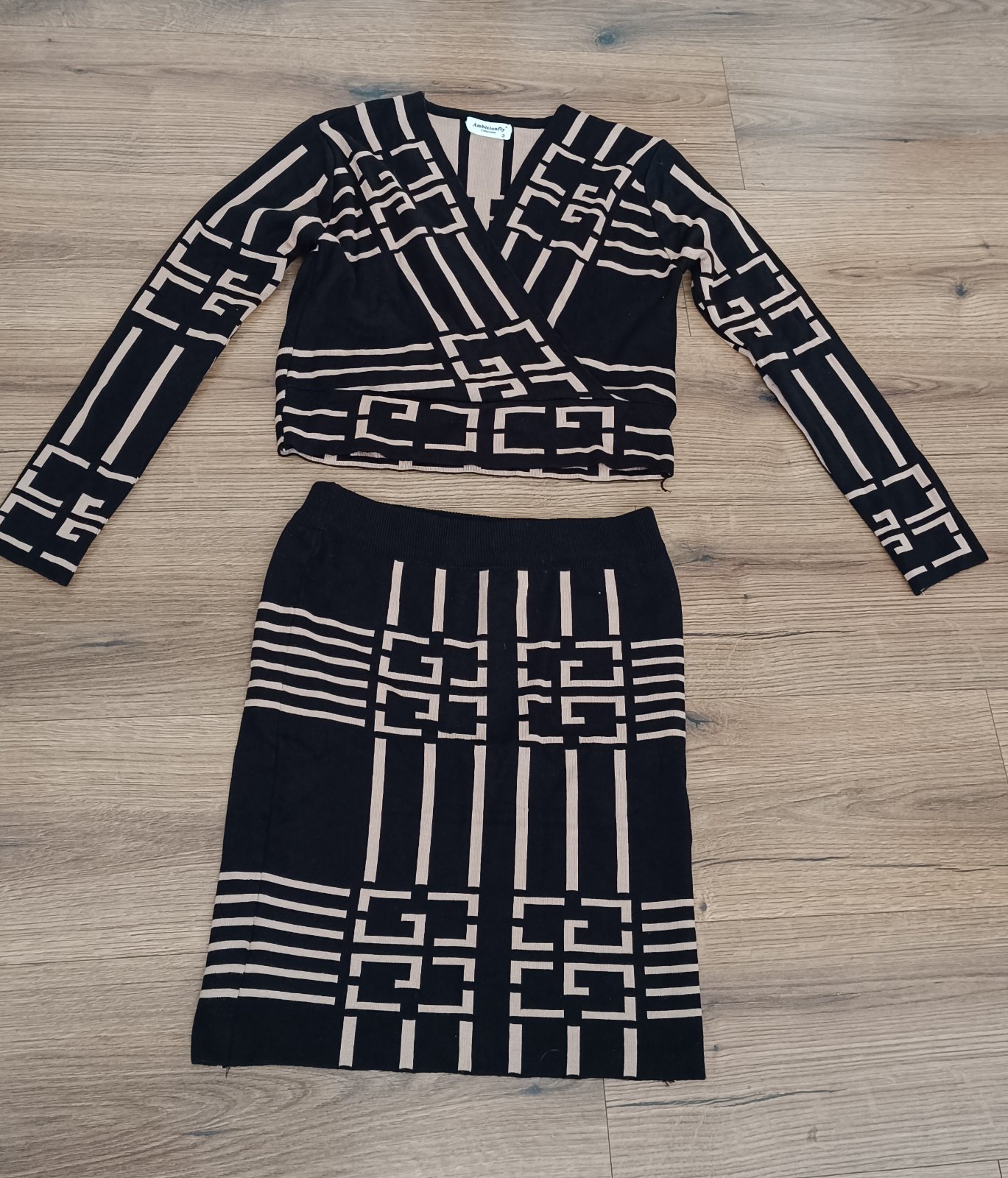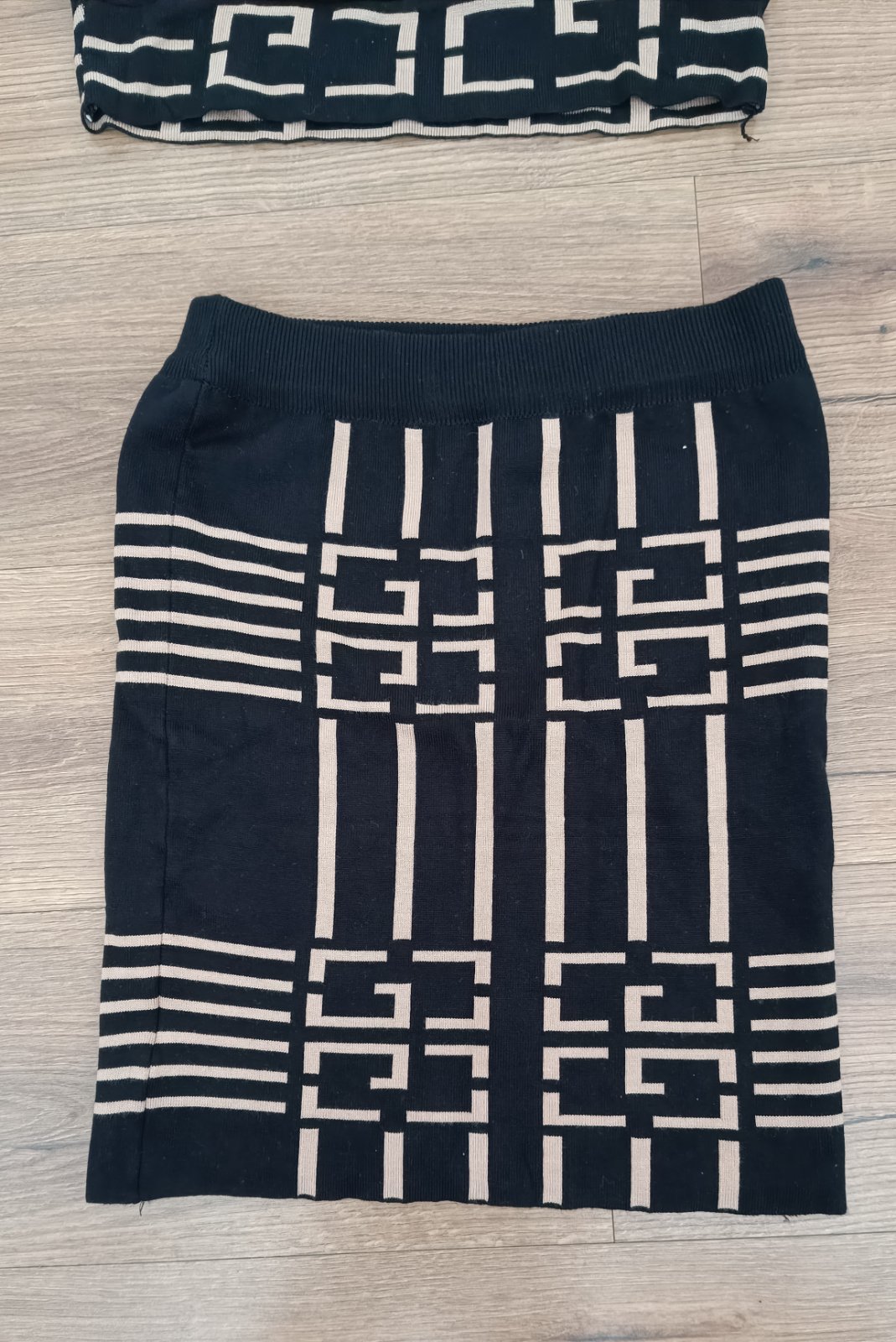 Úpletová súprava veľ.S. Nová, bez štítku,nenosená, nepoškodená. Dĺžka úpletového vrchu 46cm, šírka 2x40cm, rukáv 58cm. Sukňa celková dĺžka 49cm, pás 2x36cm. Všetko je merané bez natiahnutia , je to úplet tak prispôsoby sa postave.