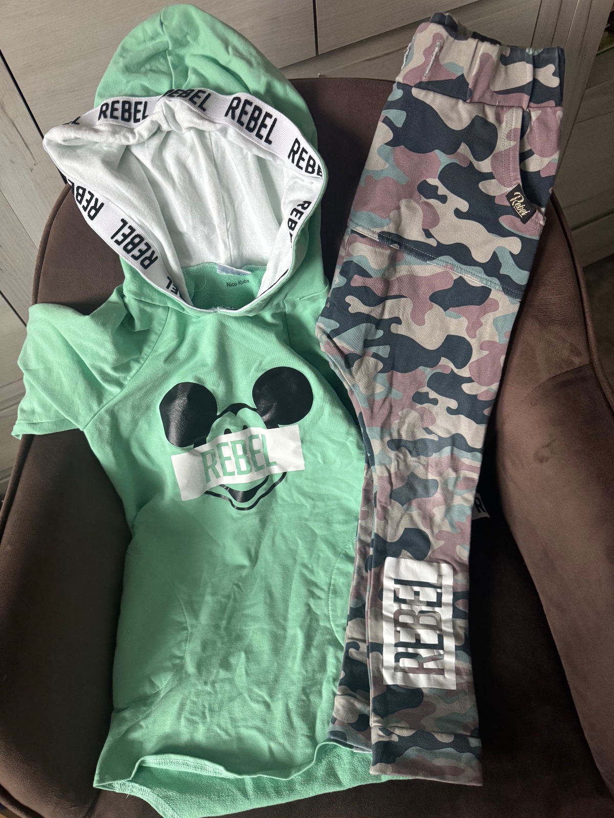 Krásná málo nosená značková tepláková súprava. prešitie v detailoch, má aj QR kod Velkosť sadne oversize XS - menšie L Rozmery: Celková dĺžka mikina 56cm, šírka 47cm, rukav od krku 62cm vrátane pat...