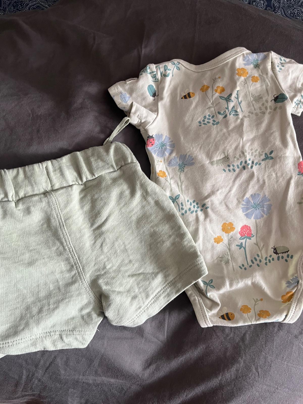 Velmi pekný letni set. Body par krat oblecene, kraťasy len oprane. Velkost 50, sedi aj na 56