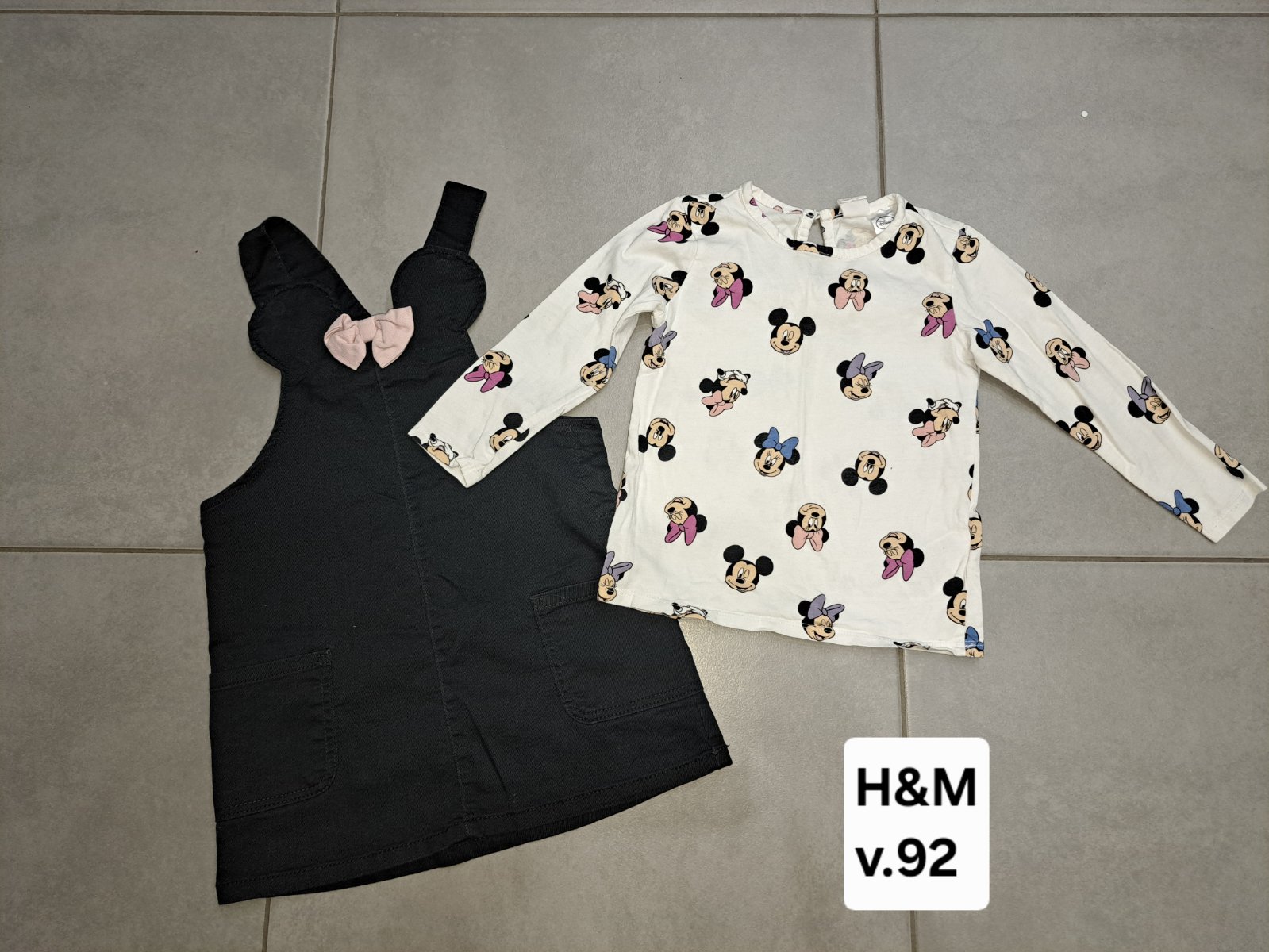 Komplet bol veľmi málo nosený,iba pár krát do škôlky,kde ale malá stihla padnúť na kolienko,takže jedno je tam zašitá malá dieročka,nie je veľmi vidieť,keďže je to tigrovaná látka,vrch je 100 % sta...
