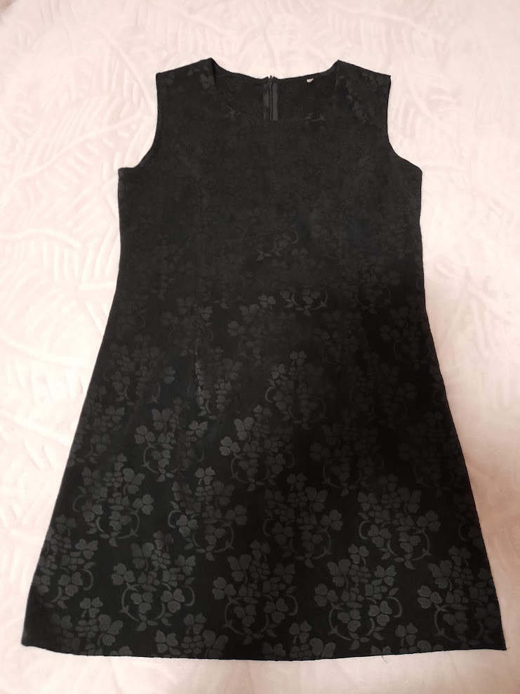 Pár krát oblečený šatový kostým. Šaty sú bez rukávov, zapínanie na zips na chrbte. Sako má na bokoch rozparky. Zapína sa na jeden gombík. Bez poškodení v zachovalom stave.