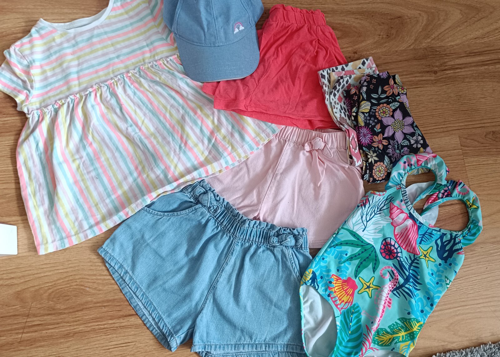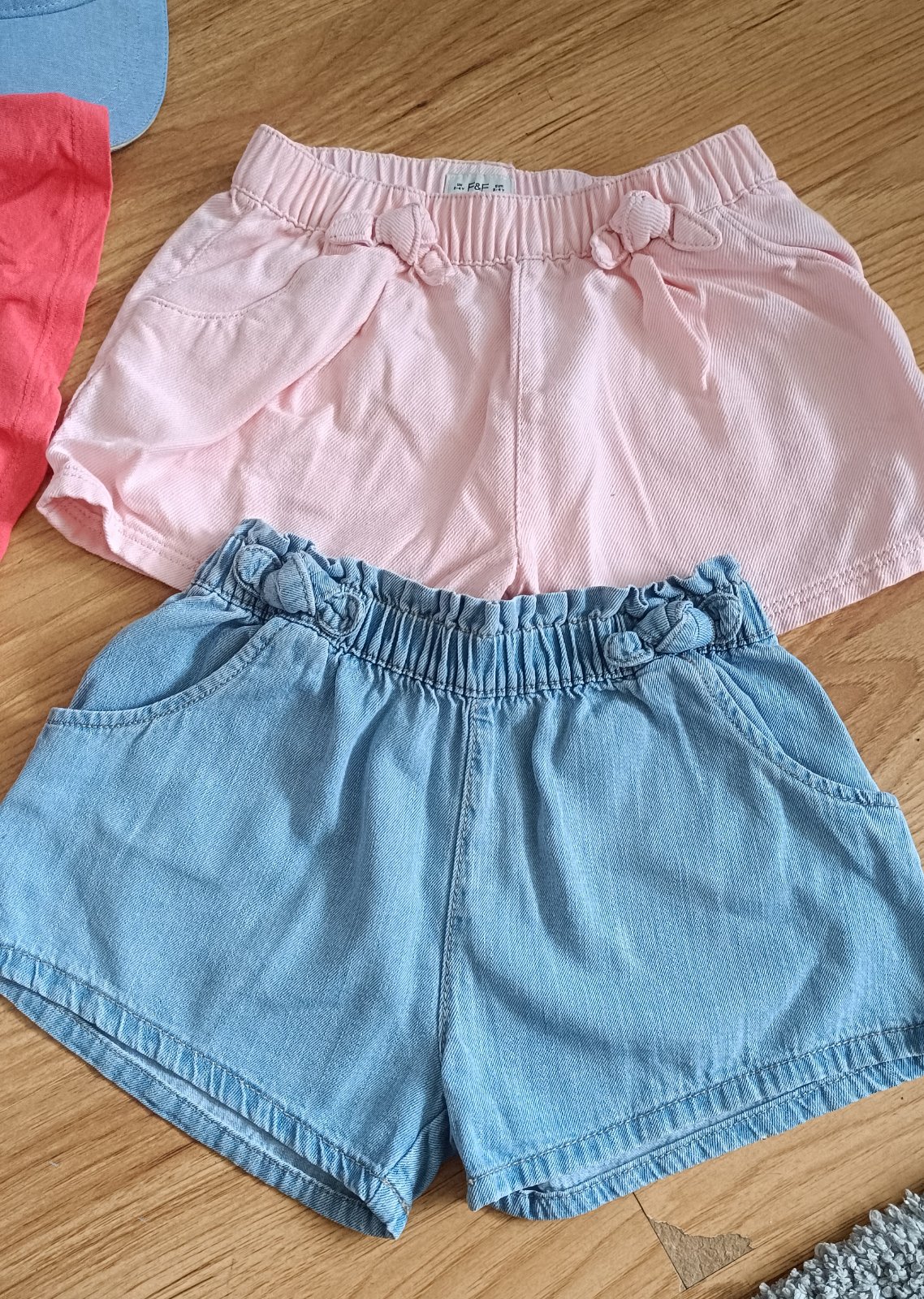 2 šortky látkové ružové a modré 110 f&f ako nové