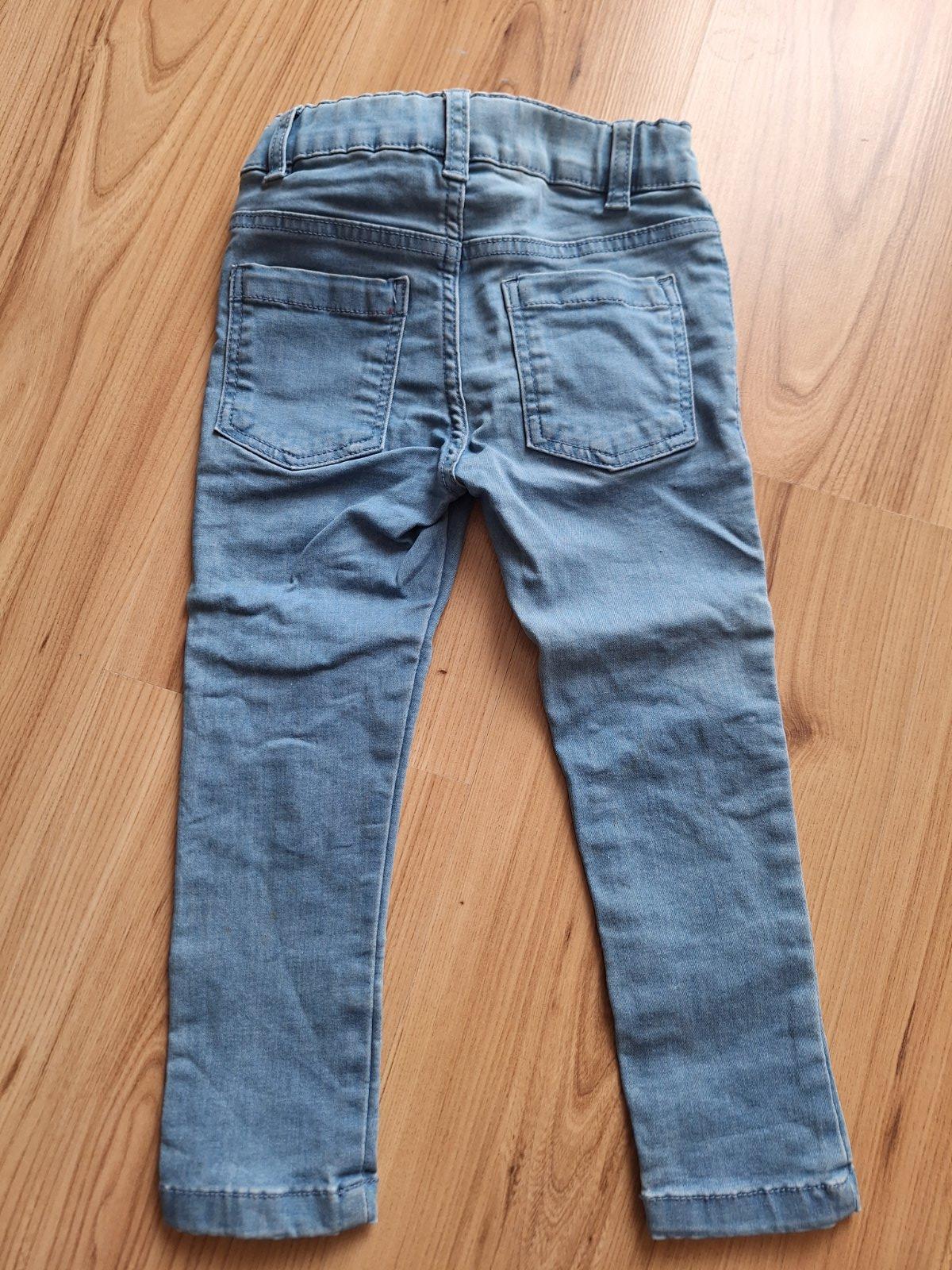 Rifle a tričko vo veľmi dobrom stave, uvedená veľkosť 92, reálne 98. Rifle - dĺžka 54cm, tričko - dĺžka 38cm, šírka 28cm.