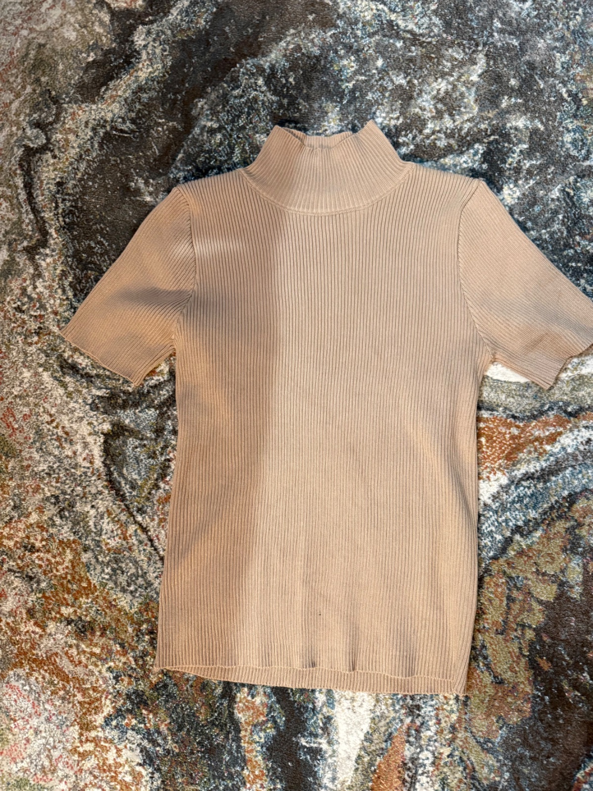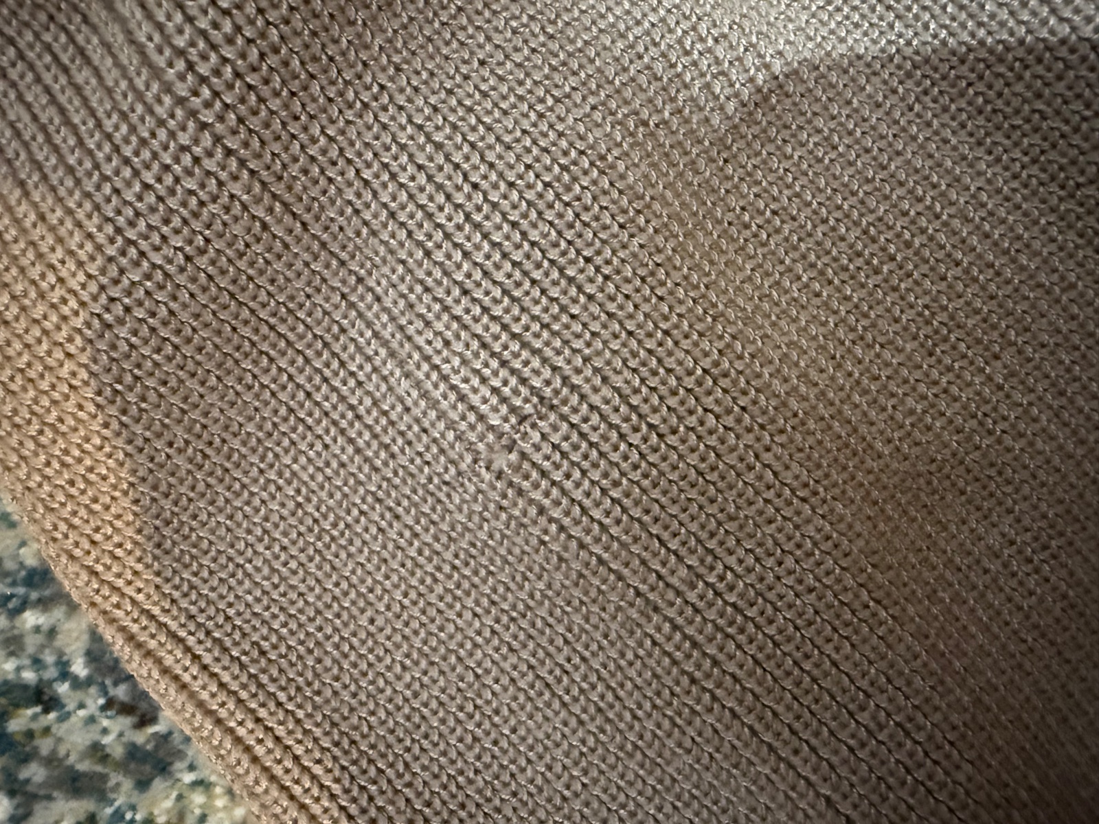 Vzaty raz.Jemne zatrhnutie,vid posledna foto,pri noseni nevsimnutelne. Velkost S/M,nezmolkuje sa.