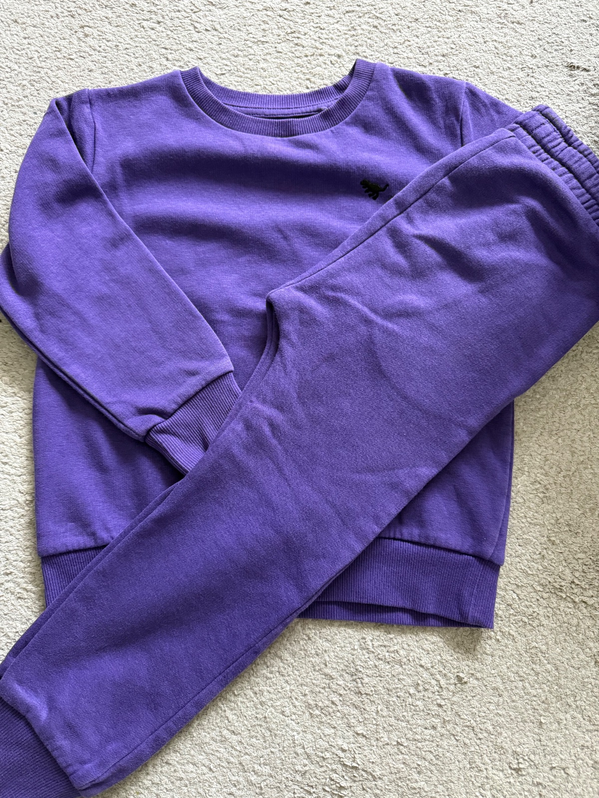 Krásna fialová súprava. Ja som ju mala raz a oprala. Top stav. Kúpená Mikina cez hlavu s kapucou v predu klokanie vrecko. Dlžka 64cm dolu patent, šírka 49cm Kraťase sú po kolená, širšie. Dĺžka 55...