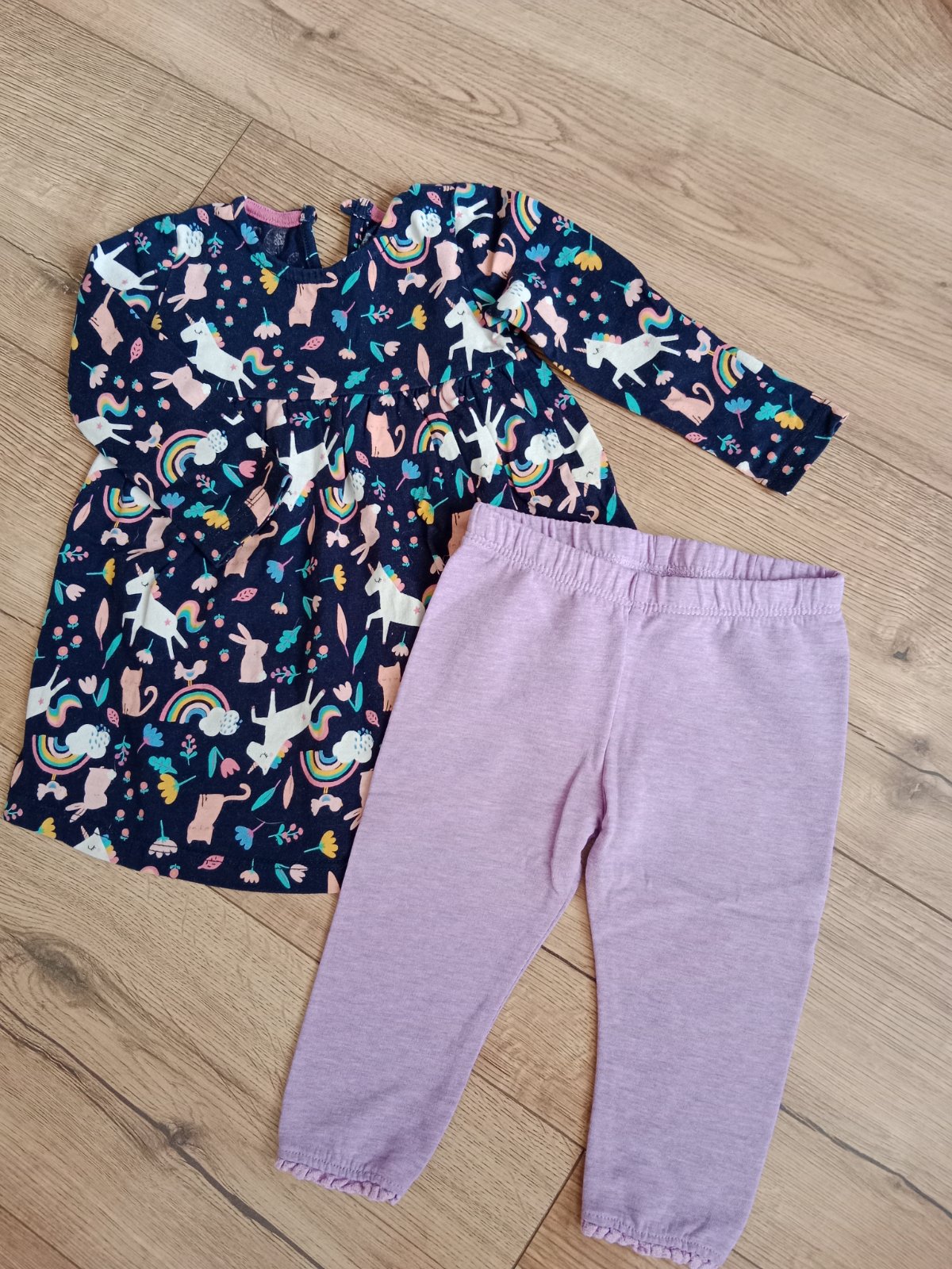 Píše veľkosť 74, ale sú menšie oba kúsky. Legínky zateplené, šaty oblečené 2x. Bez poškodenia.