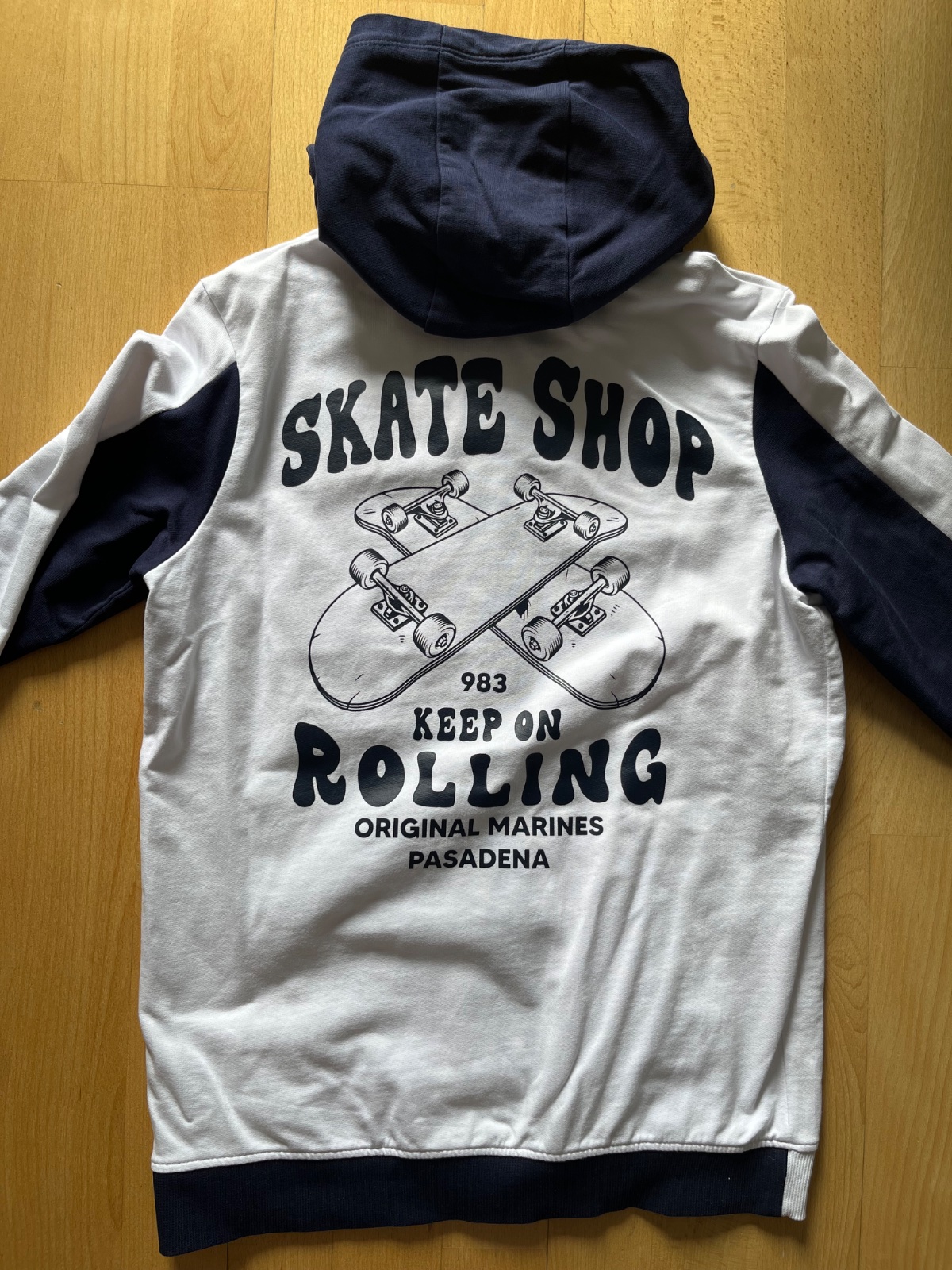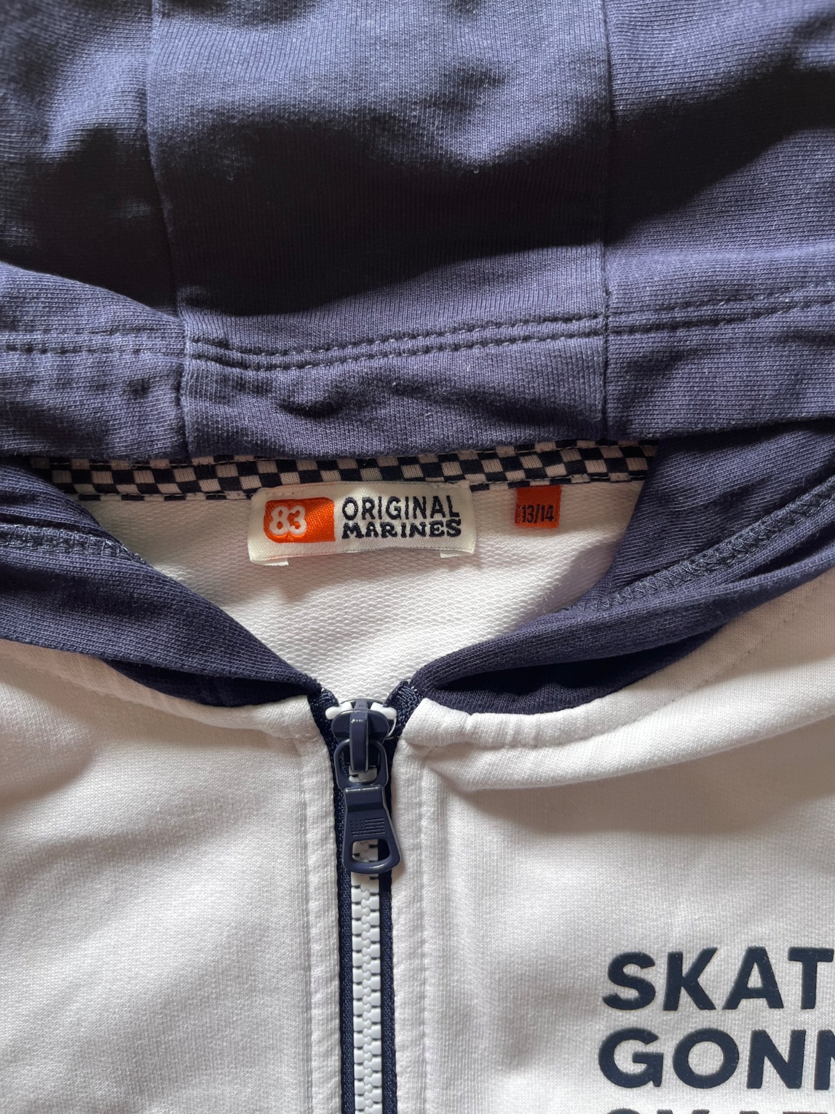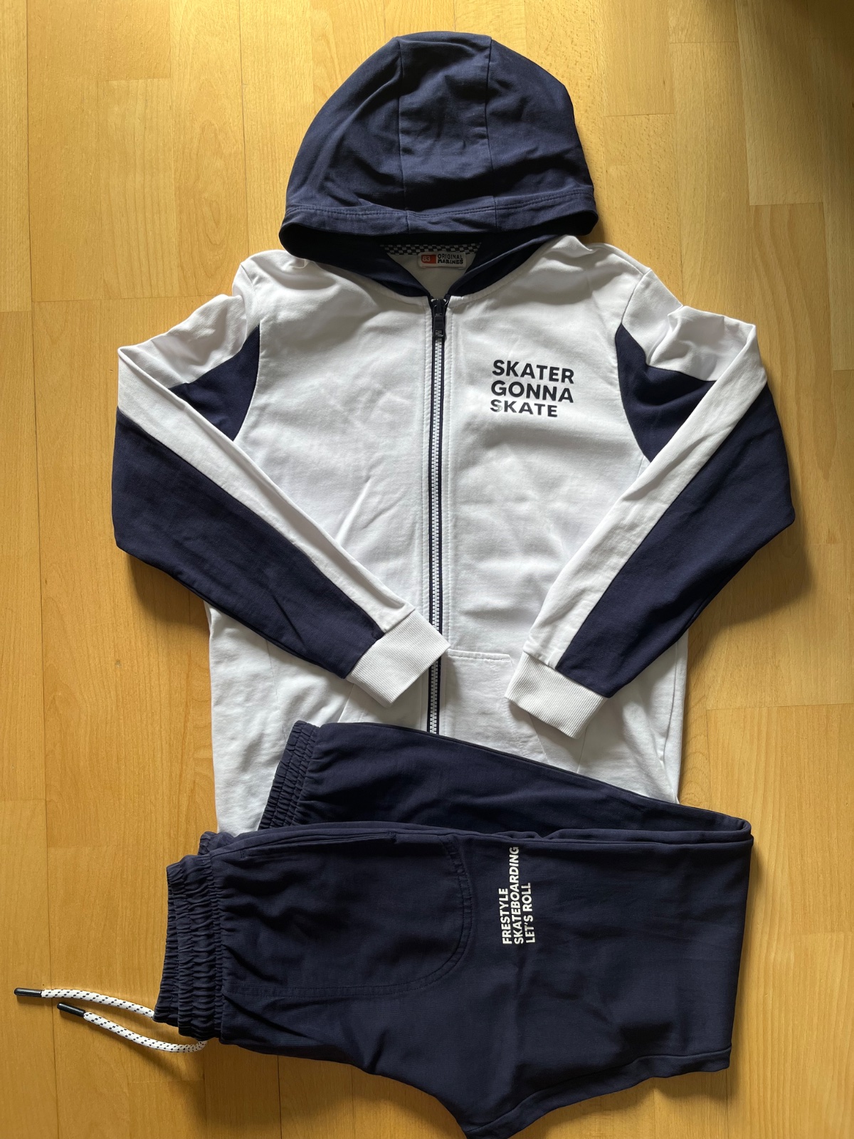 Predam tm. modrú kombinovanú s bielou - teplakovu supravicku Original Marines, uvedena velkost 13/14 - zodpoveda skor na 12/13, par krat oblecena, bez poskodeni, cista bavlna. Mikina zadna dlzka 63 cm, sirka pod pazuchami 47 cm, dlzka rukava od krku 69 cm. Kapucna podsita upletom, zips v super stave, 2 predne vrecka. Teplacky bocna dlzka 94 cm, sirka v pase v klude 34 cm, natiahnutý pas do 43 cm, v pase guma + stahovacia snurka. BA - Ruzinov.