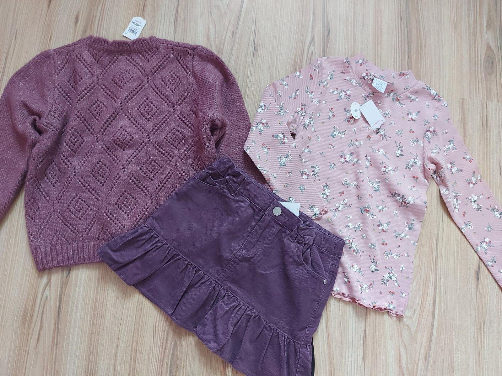 Nový. Veľkosť sedí, tričko a sukňa. 7e kus, spolu 12e. Svetrík predaný.