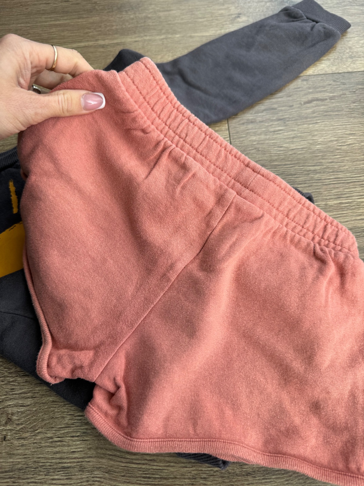 Kupovaná nová, originál z USA, mikina 1x oblečená, nosené boli len legínky aj keď nebyť diery na kolene boli by bez chyby. Všetko 100% bavlna. Set posúvam iba za cenu mikiny, legíny potrebujú zápla...
