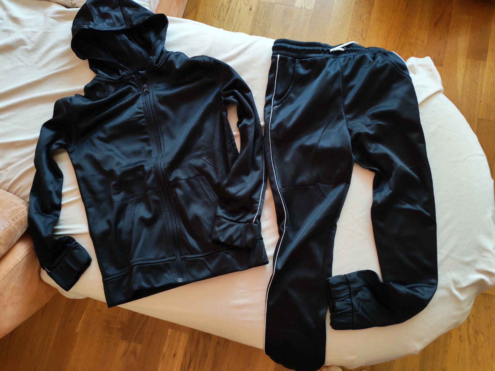 Nové bez visačky, nestihli sme vynosiť odkedy dostal ako darček, synovi už malé. Dlžka nohavíc 83cm, pás 29cm, mikina dlžka 56cm, šírka 40cm