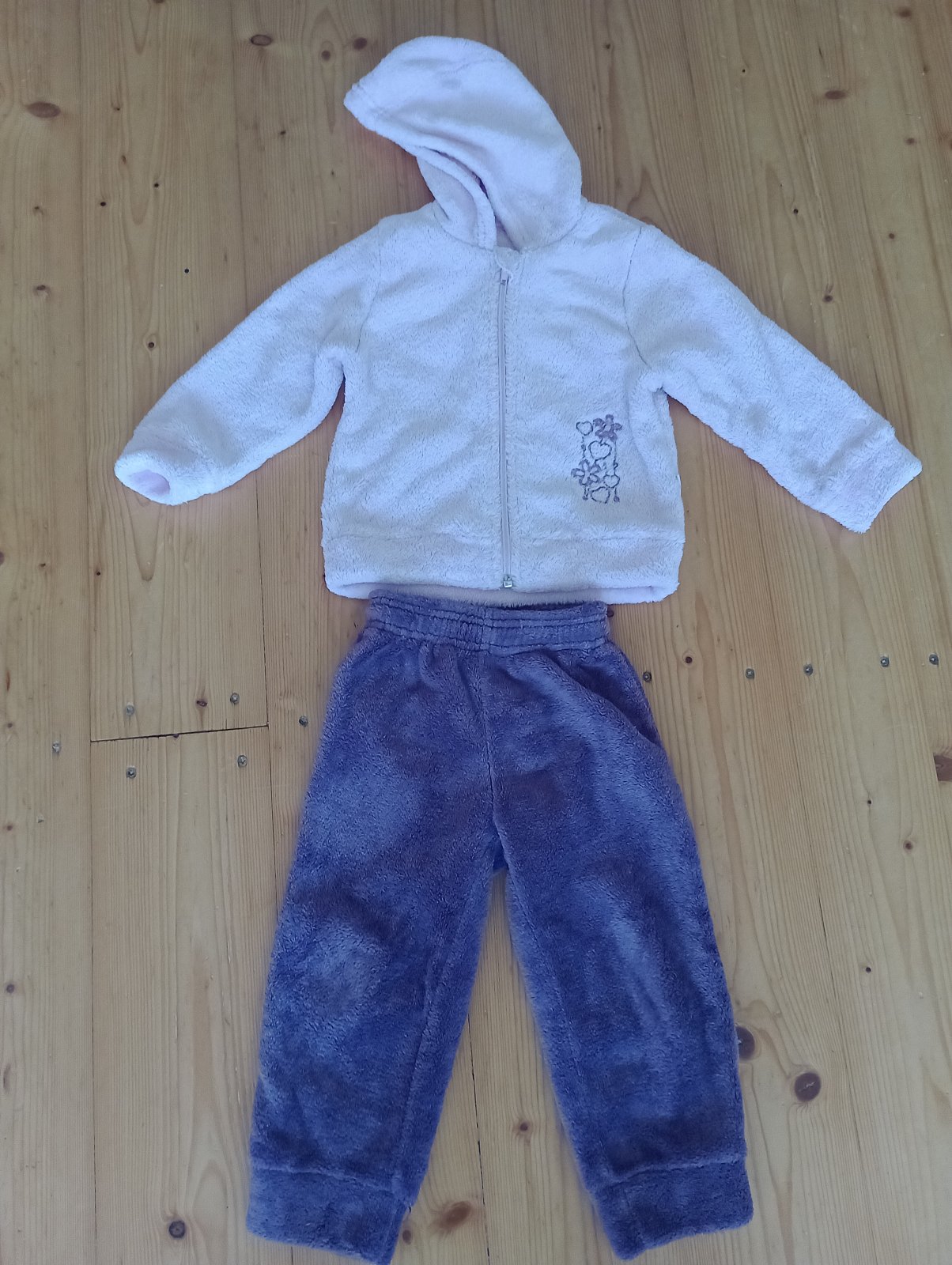 Dobrý nosený stav, nosenie vidno trošku na kolenách, nie je to však až tak vidno, na fotke sa to leskne. Inak stále pekná. Veľkostne sedí.