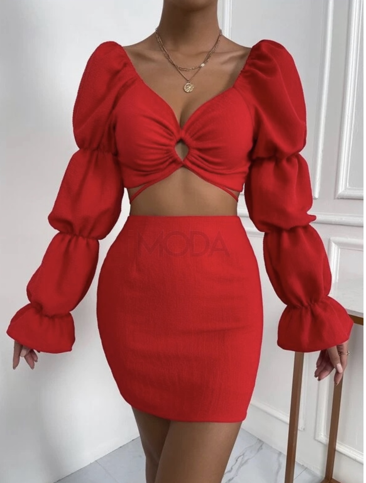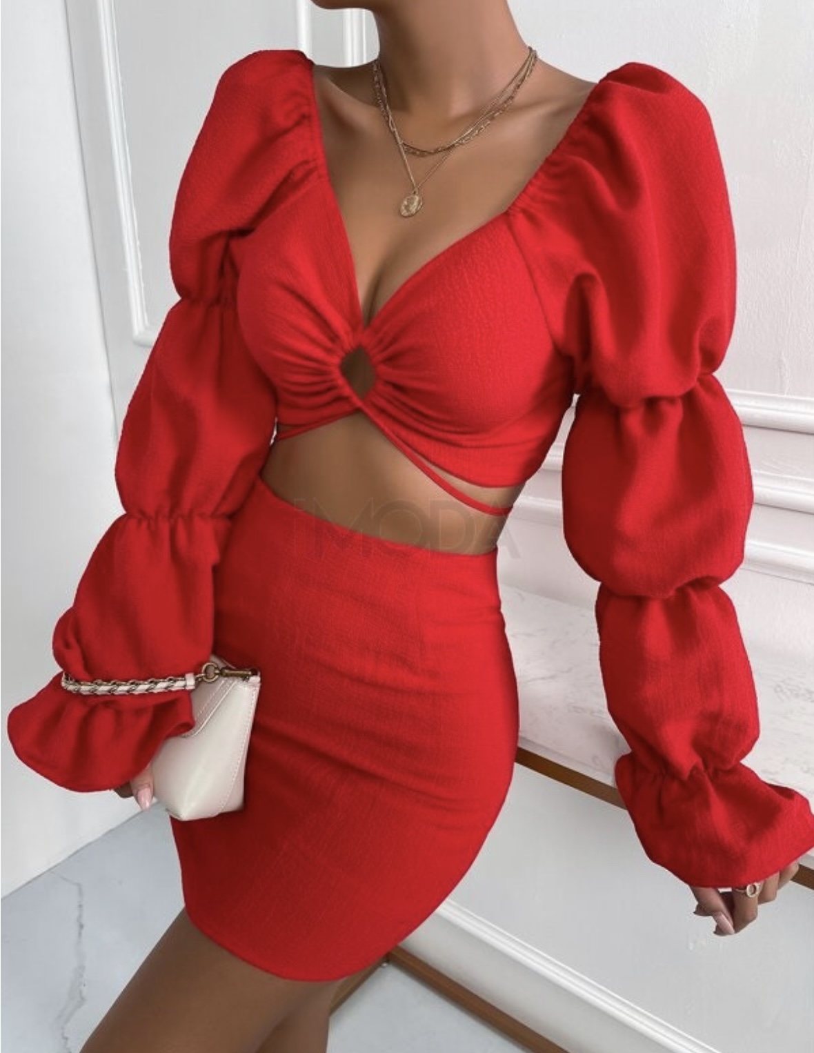 Novy set cervene nohavice a kratky top, uvedena velkost M, ale sadnu na S. Sirka v pase neroztiahnute 30 cm, v pase je guma takze sa prisposobia. Dlzka 110 cm. V galérii sú aj moje real fotky.