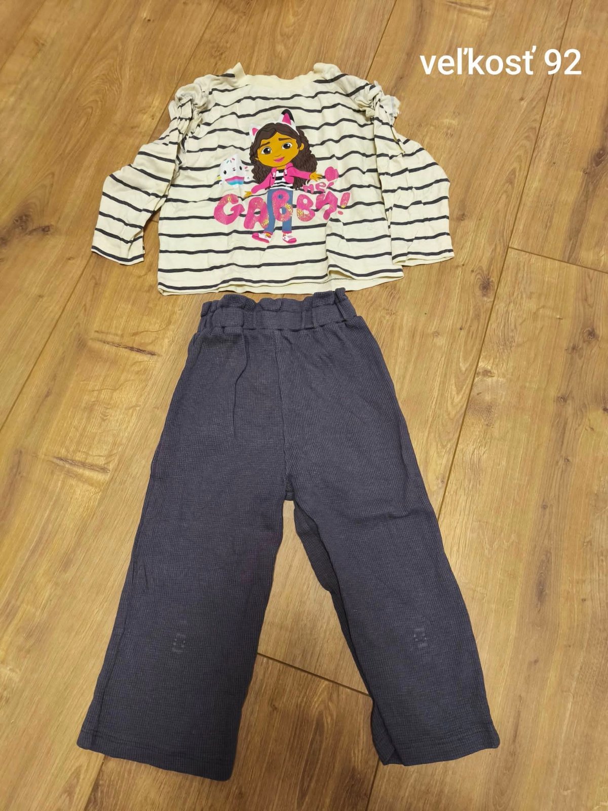 Predám balíček veľkosť 92 ktorý obsahuje: tepláky, tepláková súprava, kraťasy, zvonové nohavice s tričkom Gabby dollhouse, tričko s dlhým rukávom.