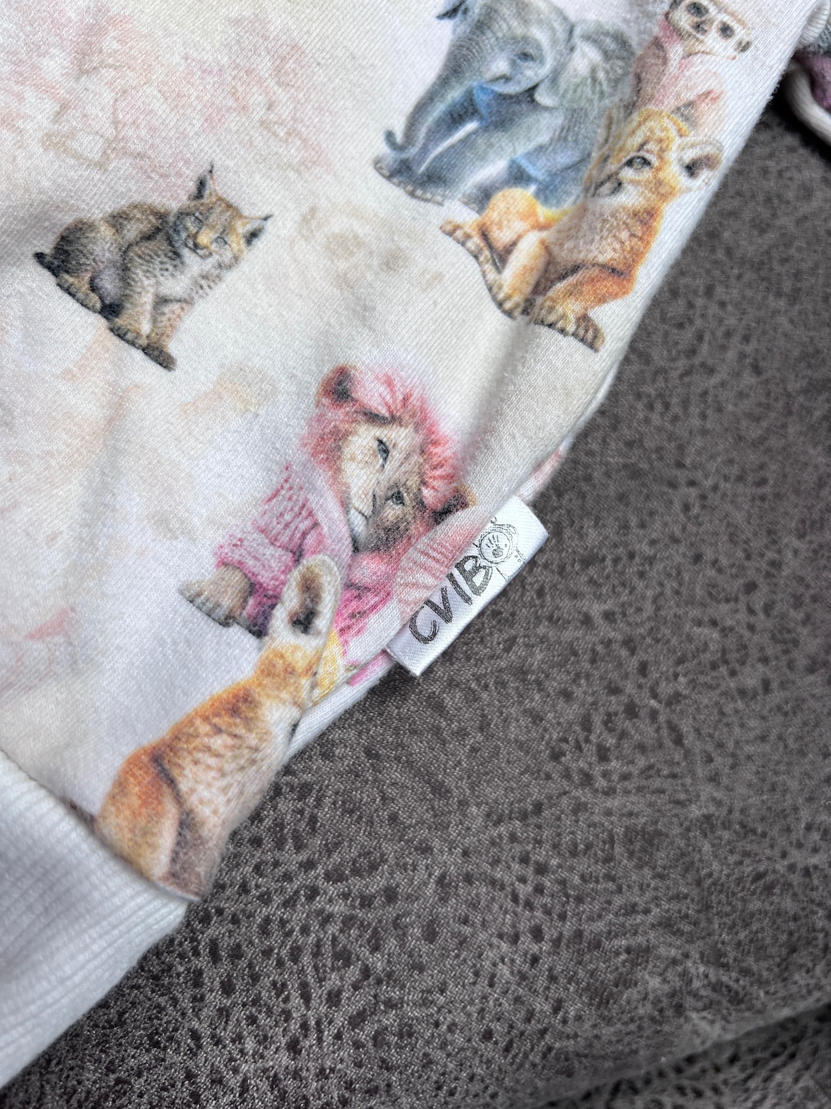 Naša obľúbená, často nosená ( zohľadňujem v cene). Je to handmade, čistá kvalitná príjemná bavlna. Bez dier a vážnych poškodení. Len vidno, že už farby nie sú také sýte ako keď bola nová. Veľkosť 80, ponosíte aj ako 86. Značka handmade Cvíbo.