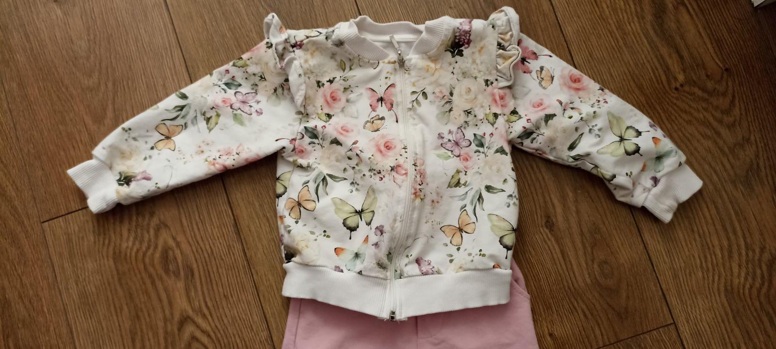 Súprava s pekným vzorom, s volanmi na rukávoch a s vreckami. Šetrili sme si ju, je bez chýb . Dieťatku veľmi pristane . Pôvodná cena 20 eur.