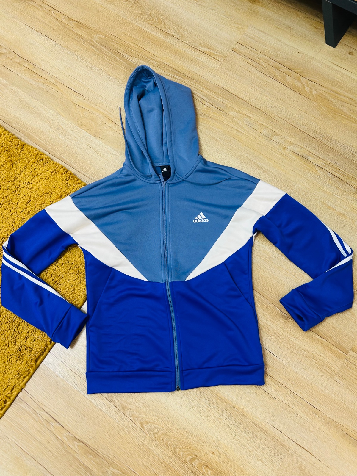 Veľmi pekná, v skutočnosti ešte krajšia ako na foto. Veľkosť uvedená S, ale sedí skôr na M. Vponuke aj farbne ladiace tričko Adidas.