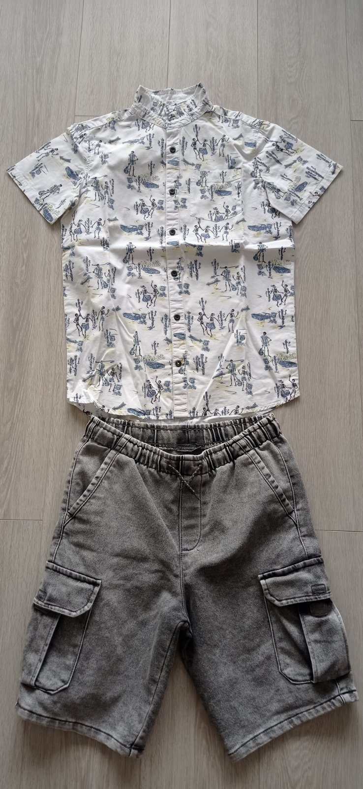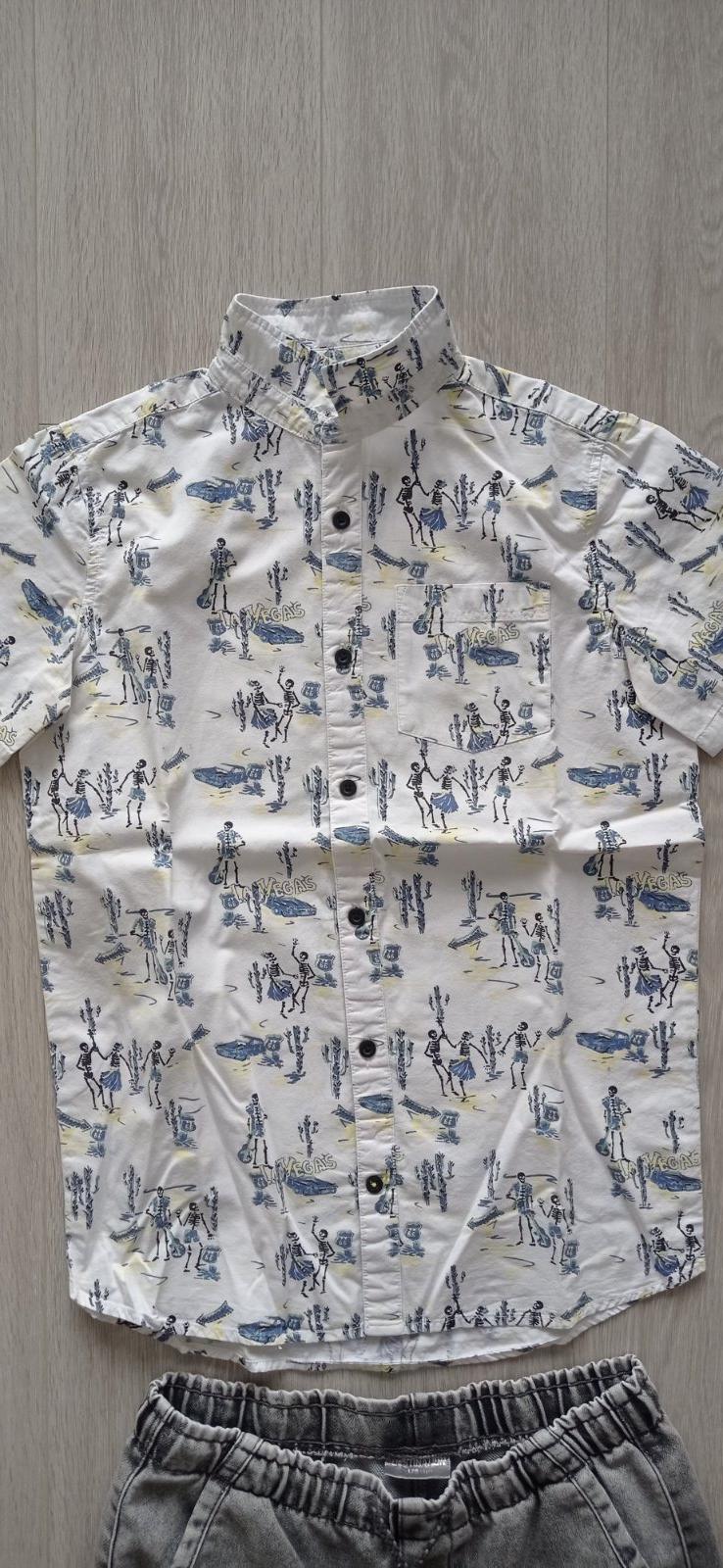 Predám kraťasy, košeľu, veľmi dobrý stav. Na 13 rokov. Veľkosť aj 158 -164. Košeľa je dlhšia na štíhlejšieho chlapca. Kraťasy uvedené 170, ale reálne skôr 164.