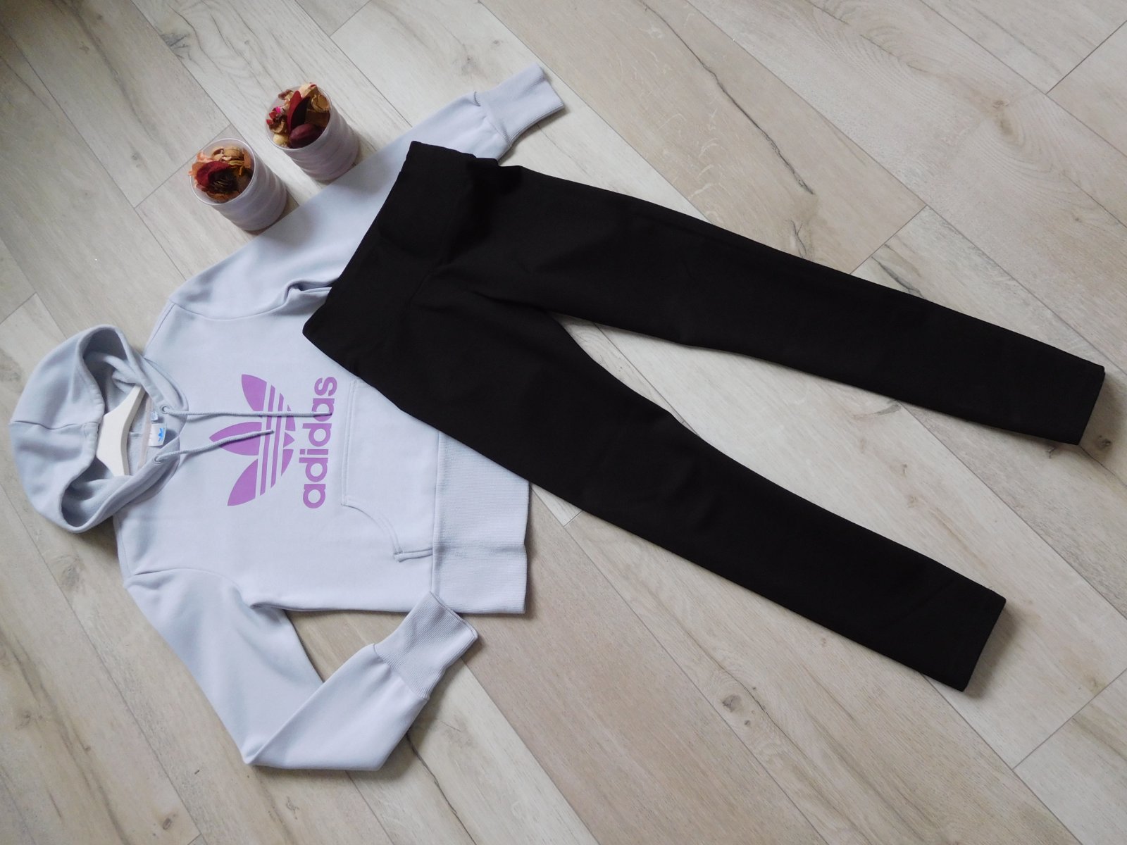 Mikinku svetlo fialkovú + leginy bavnené hrubšie čierne, viď foto, mikinka je makká,voňavá bavlnená v TOP TOP stave .