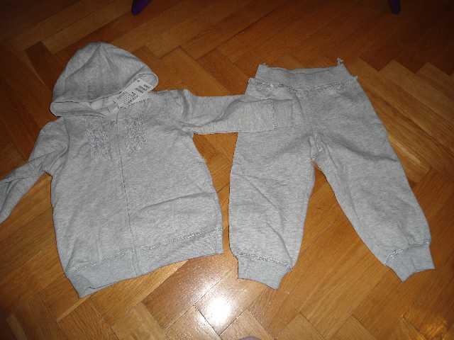 krasna suprava H&M, velkost 86,rozmery bunda dlzka 37,5 cm, rukav od kapucne 37 cm, od pazuchy 22 cm, gate dlzka 48 cm, od rozkroku 30 cm zdobena volanikmi a presivana striebornou nitou, je ozaj krasna povodna cena17,95