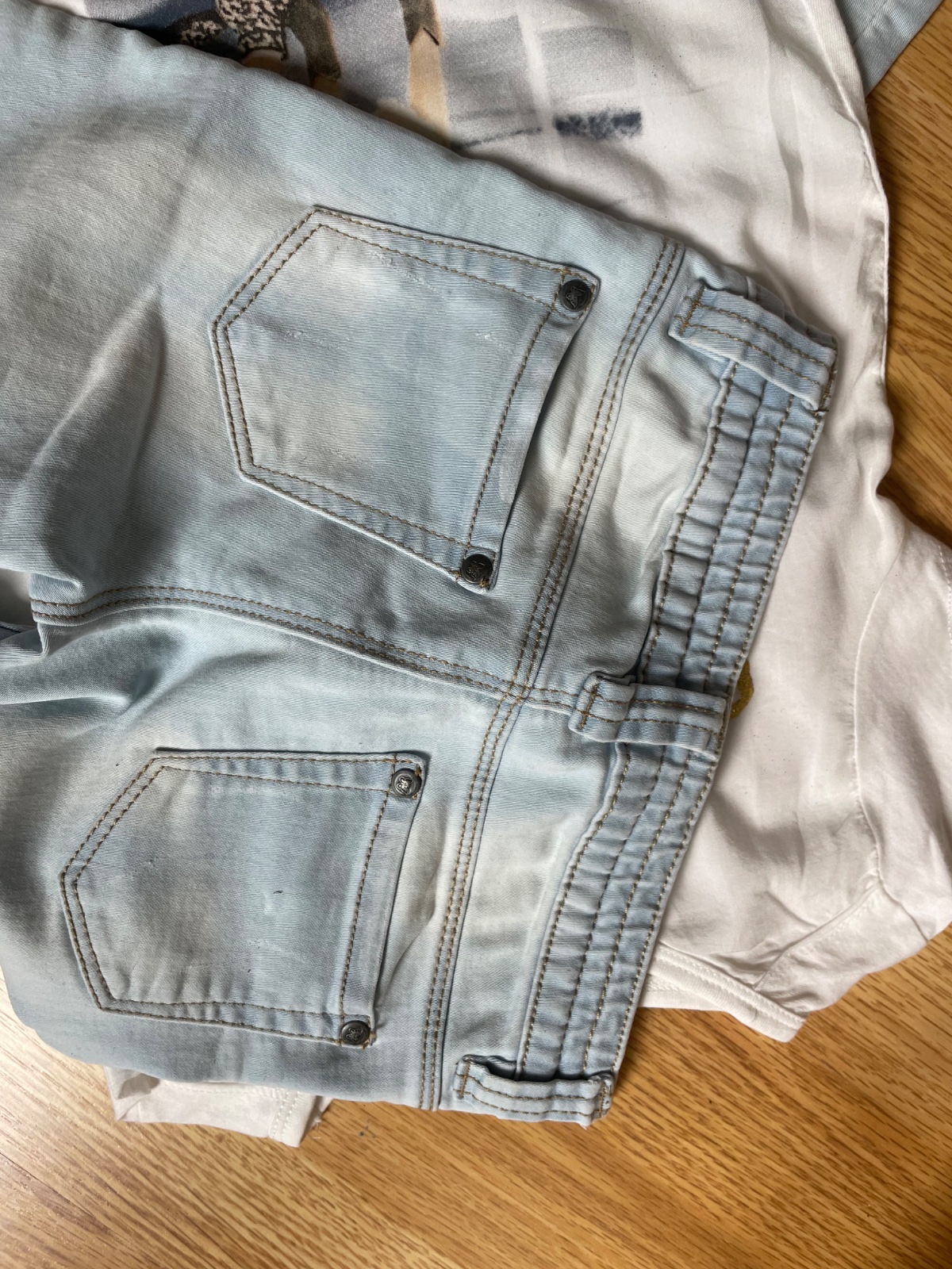 Tričko s potlačou,výborný stav šírka 34cm, dĺžka 45cm,elastické rifle Kiki&Koko v cene pás 28cm, dĺžka 69cm.