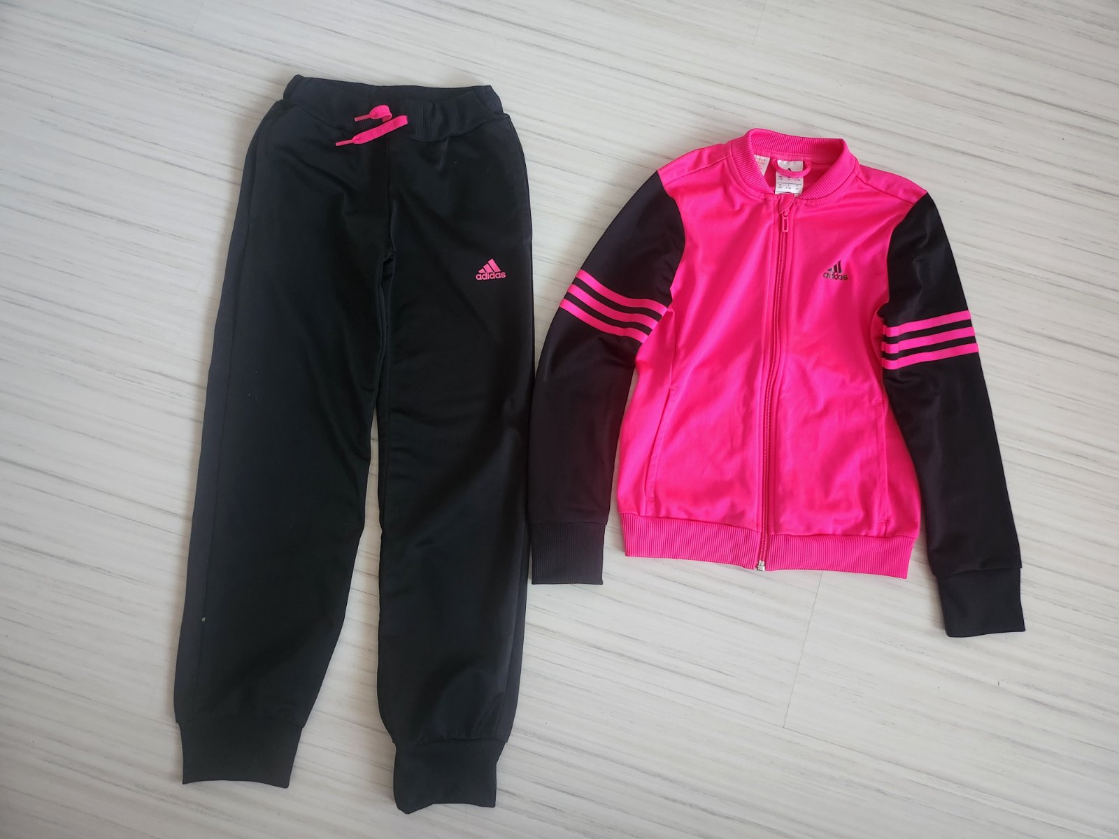 Pekná súprava v top stave. Bola oblečená len párkrát. Krásna sýto ružová farba v kombinácii s čiernou.