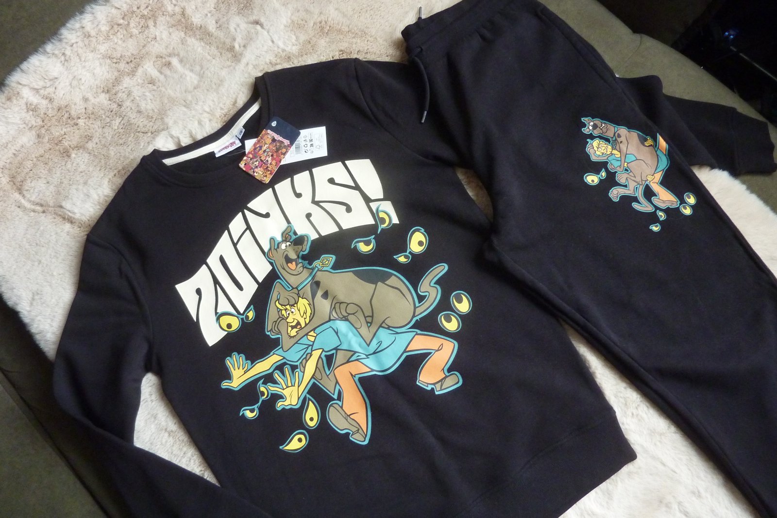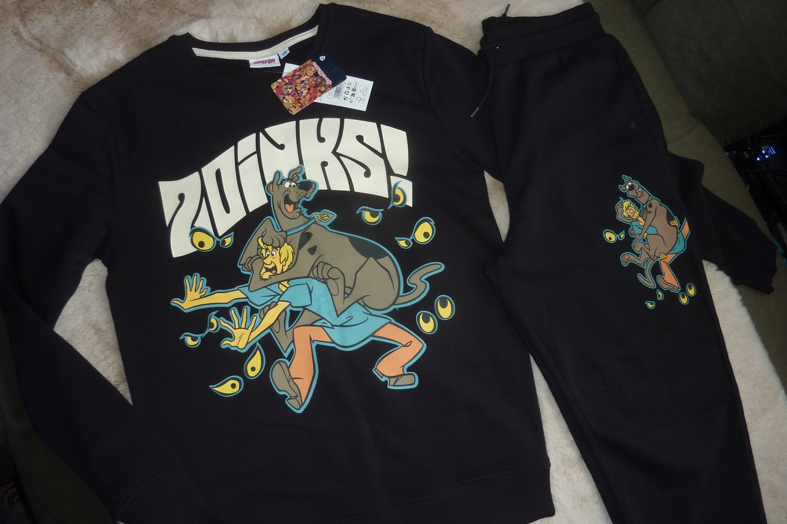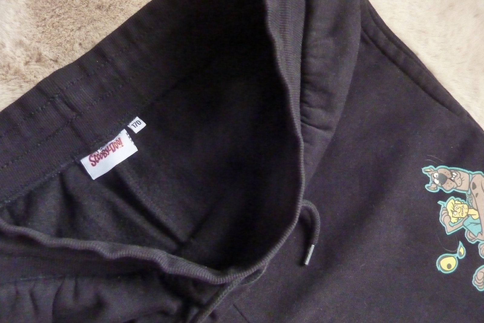 Krásna tepláková súprava Scooby Doo, veľkosť 170, bavlnená a zateplená -je teplá na zimu, čierna s krásnymi obrázkami Scooby Doo.