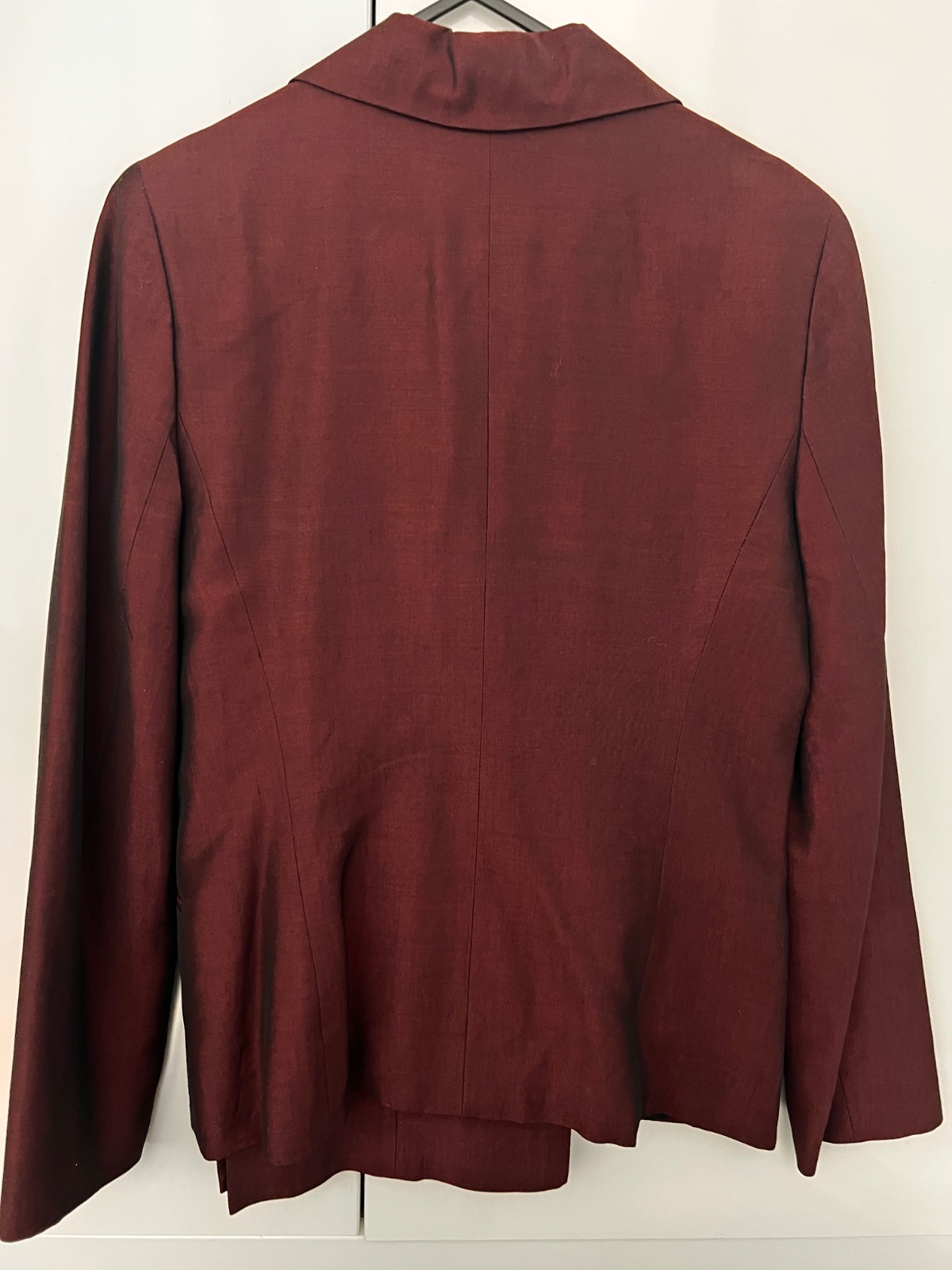 Krásny jemne metalicky kostym vlna- viskoza, klasické nohavice