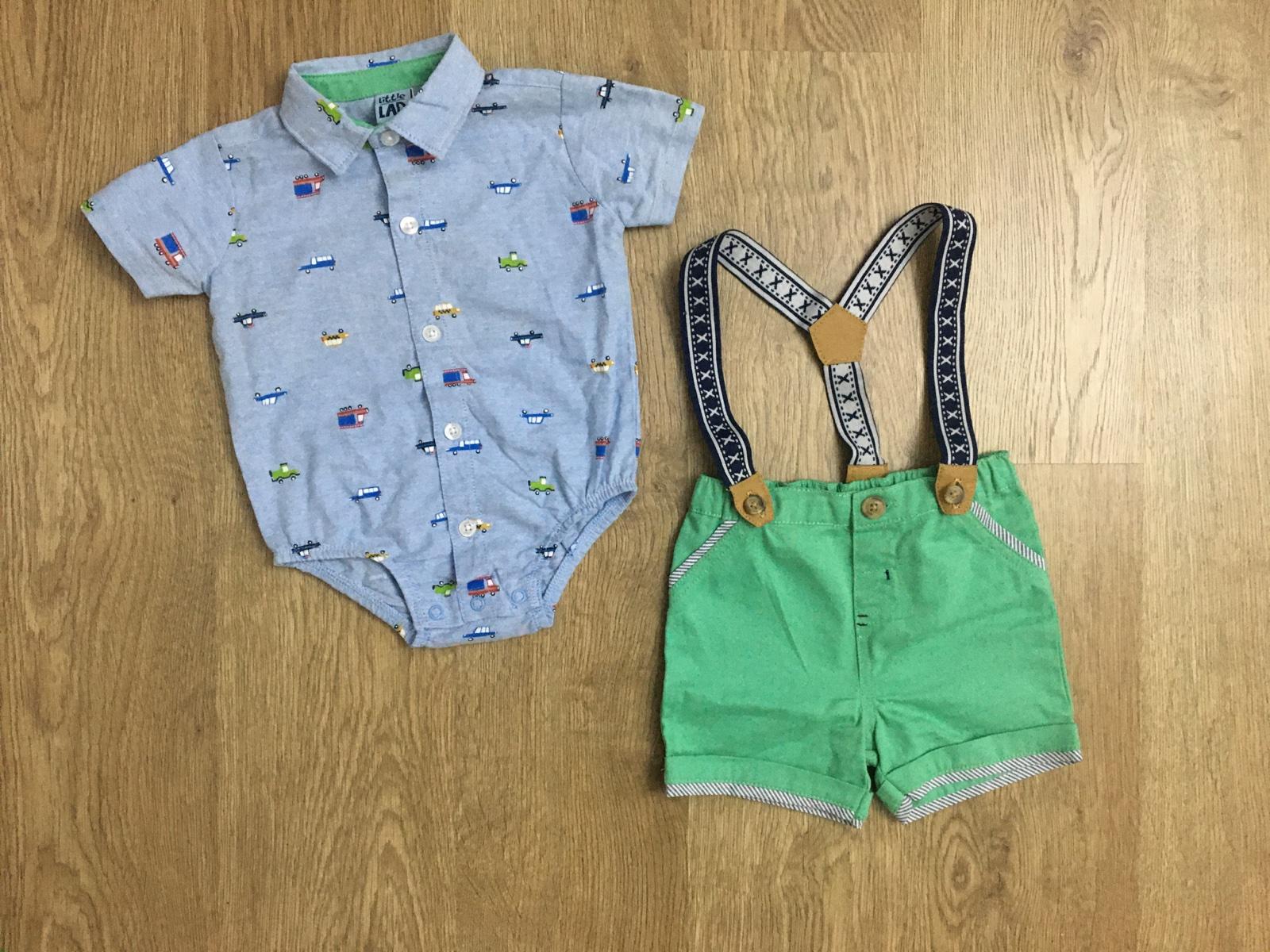 Veľmi pekný stav, oblečené 2x, košielka je klasické body, traky s kraťasov sa dajú odopnúť, každá časť sa dá kombinovať aj s iným oblečením