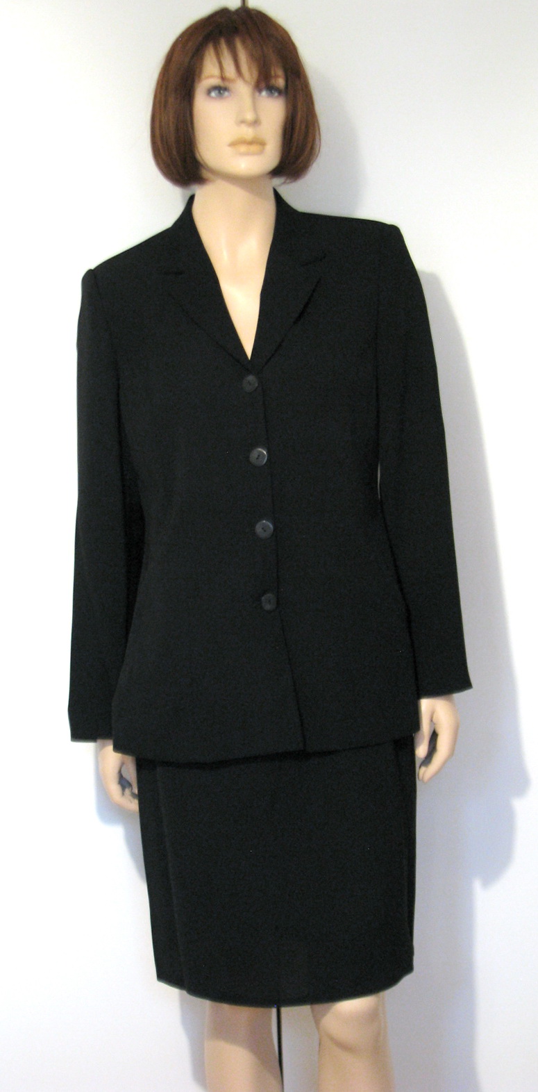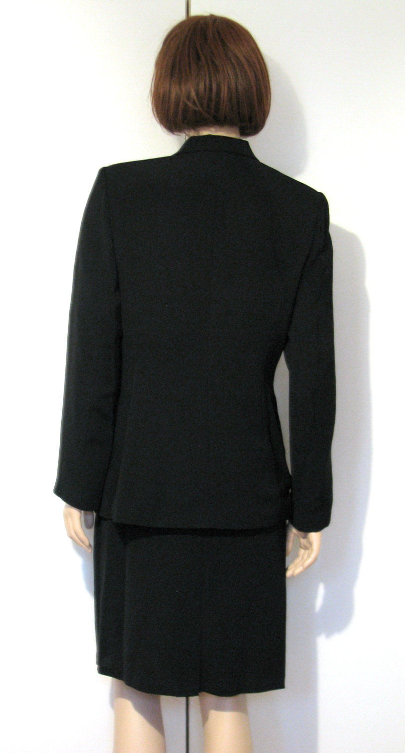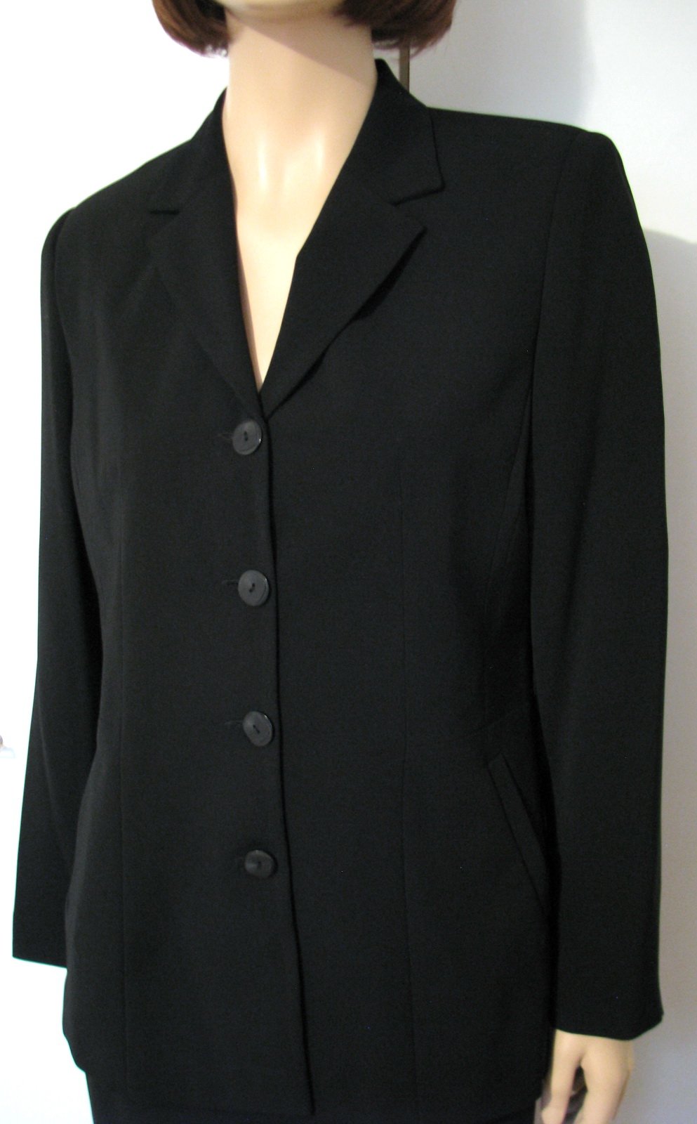 Jednoduchý elegantný basic čierny sukňový kostým, sako + sukňa. Výborne zachovalý, bez poškodení, ani neviem, či bol vôbec niekedy použitý. Veľkosť 40, rozmery sú: