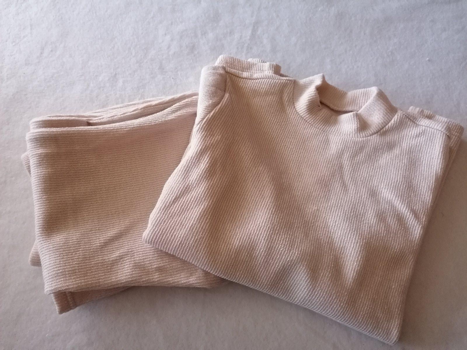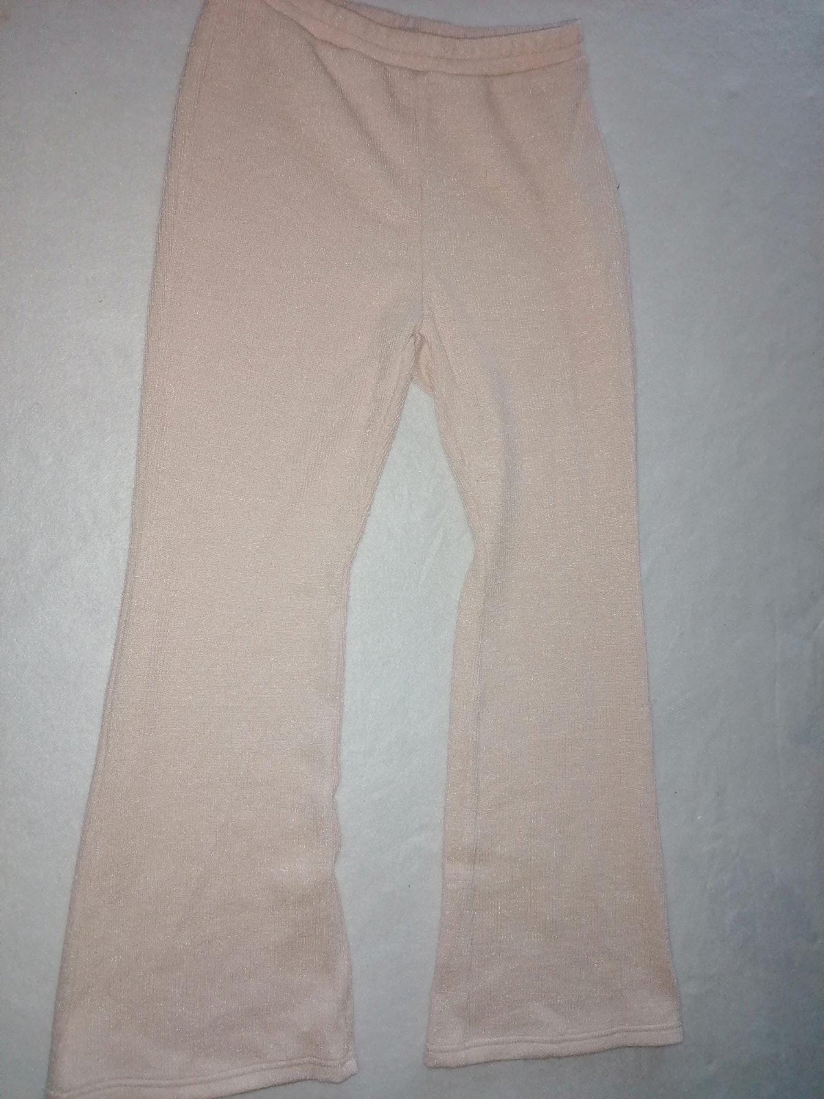 Štýlová elastická súprava, top so stojančekom a zaväzovanim na bruchu + široké nohavice. Veľkosť M. Iba odskúšaná. Rozmery dĺžka nohavíc 100cm, pás 38x2cm, boky 48cm