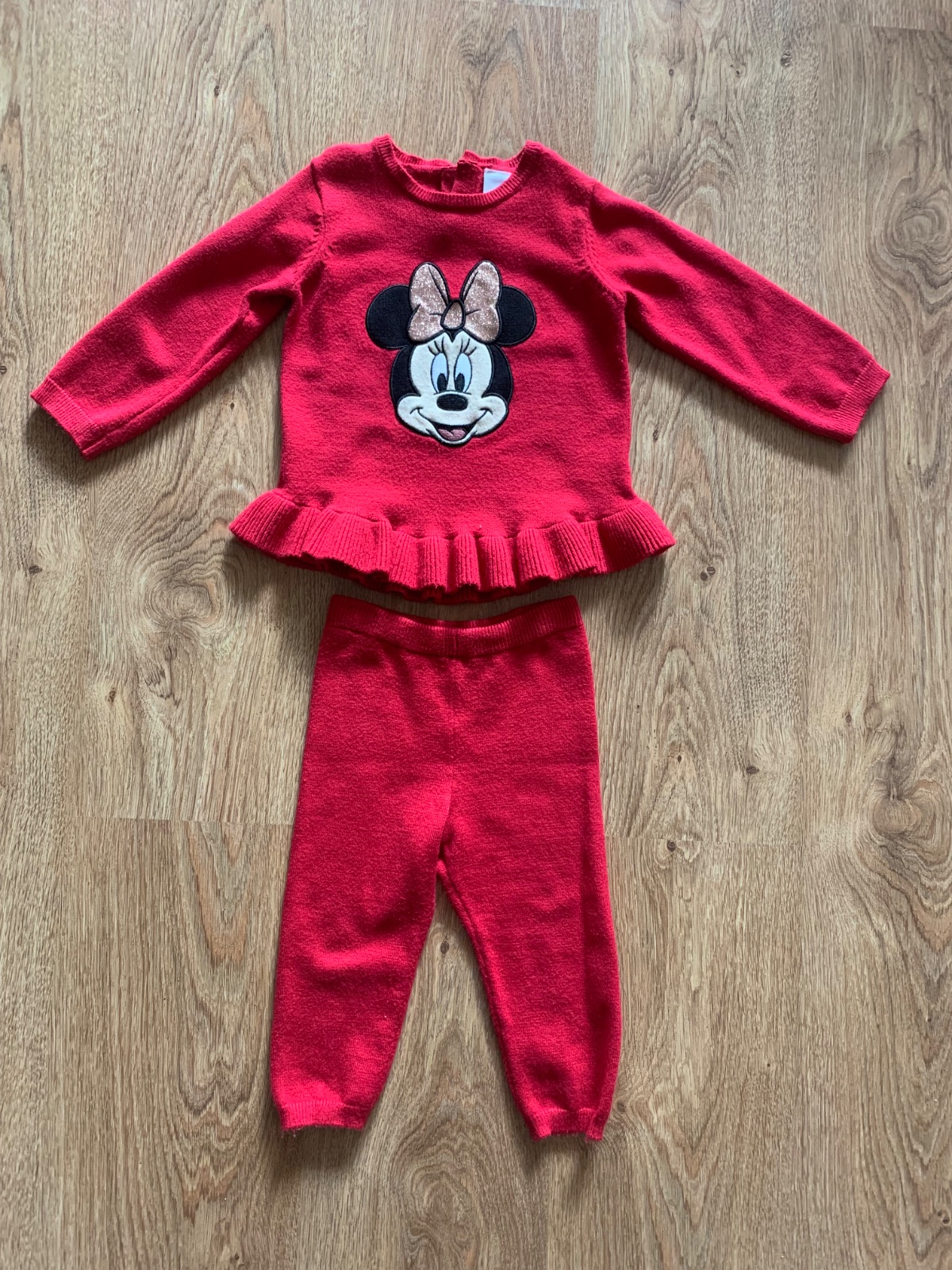 Súprava s obrázkom Minie. Vhodná na doma, nami obľúbená, hlavne tepláky. Mam podobnu supravu aj vo velkosti 86. Vid dalsie inzeraty. Bez poškodení a fľakov. Cena +posta.