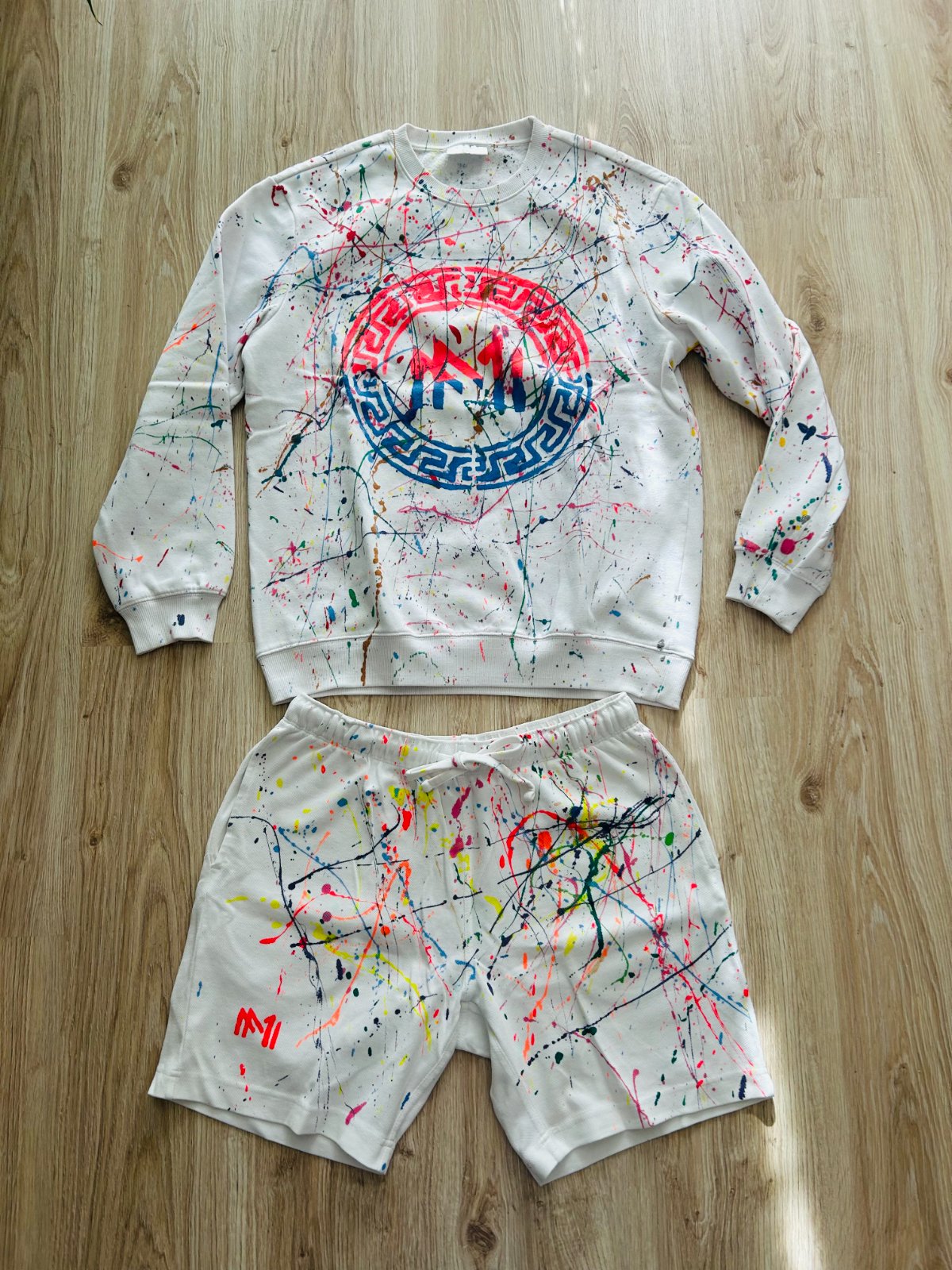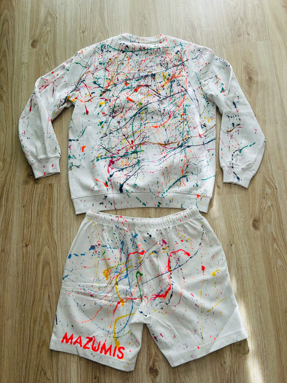 Predám tento krásny a originálny komplet slovenskej značky MAZUMIS v dvojveľkosti M/L. Komplet pôvodne stál 160 EUR. Táto značka sa vyznačuje tým, že každý jeden kúsok je originálny. Komplet pozostáva zo šortiek a mikiny. Veľmi pekný a naozaj originálny setík, ktorý sa dá vynosiť ako komplet alebo zvlášť oba kúsky.
