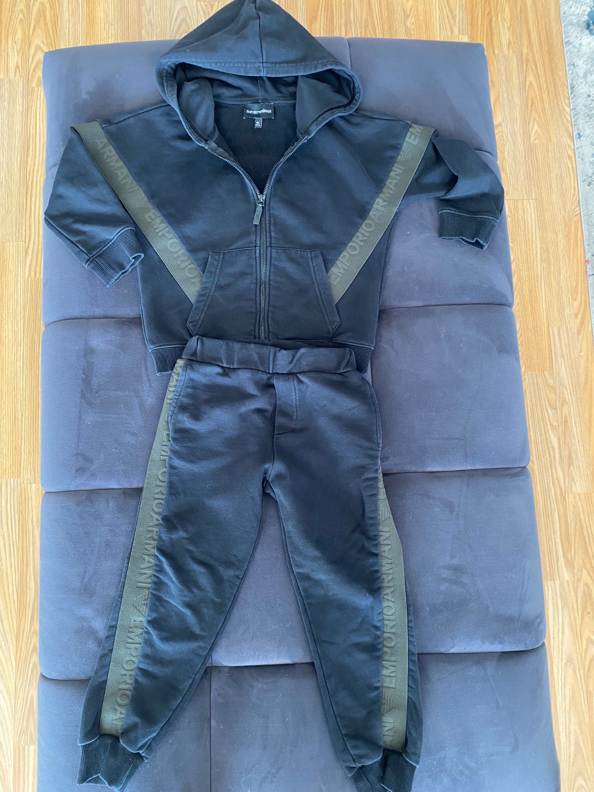 Tepláková suprava veľkosti 118 cm , značka Emporio Armani. Nohavice používané menej, mikina častejšie mal ju veľmi rád. Súprava veľmi zachovalá bez poškodení…
