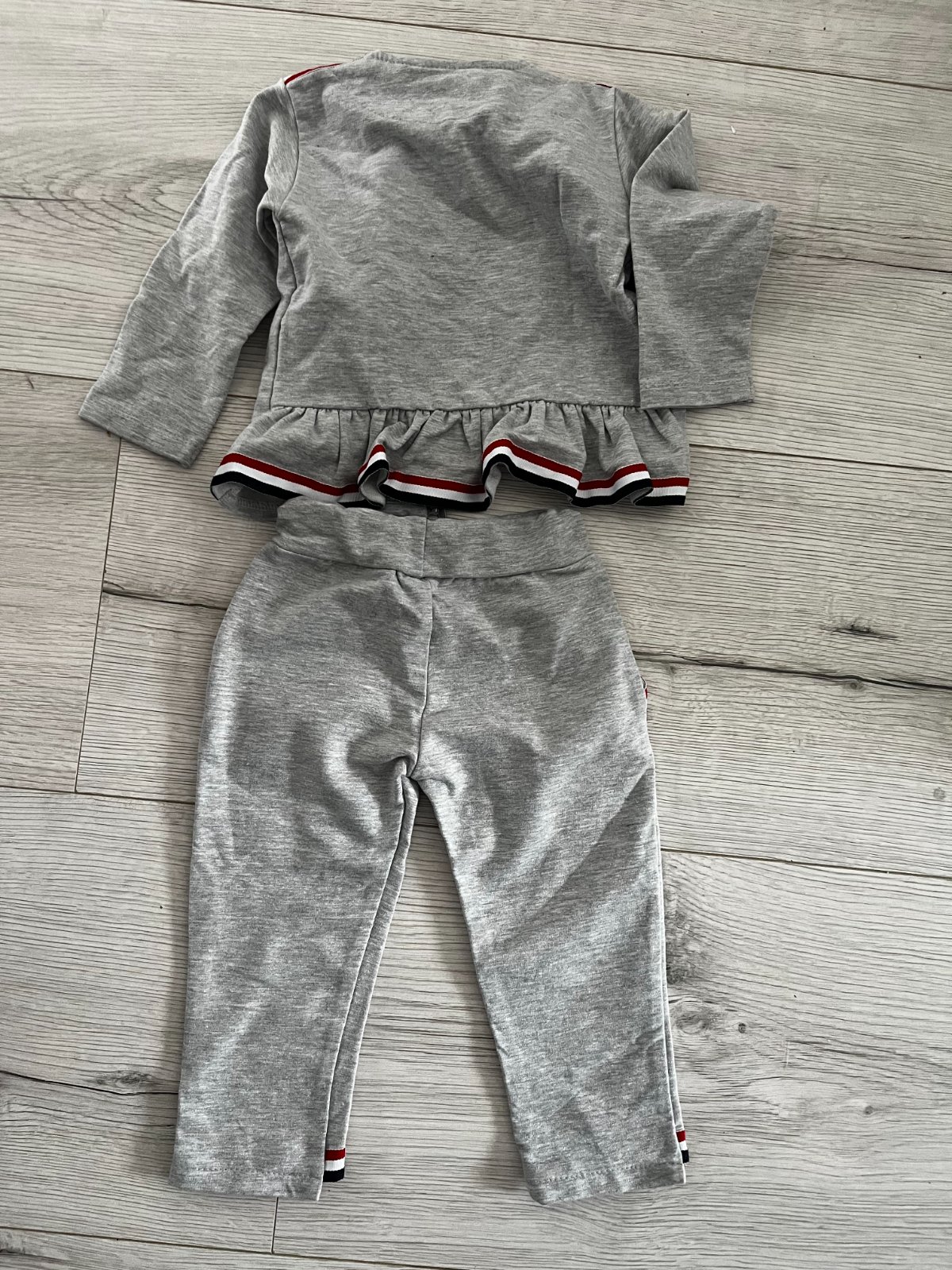 Predám vo veľmi dobrom stave sivú teplákovú súpravu značky Gamex, veľkosť: 86 (12 - 18 mesiacov). Vrchný diel má zapínanie na zips a vzadu má ozdobný volán.