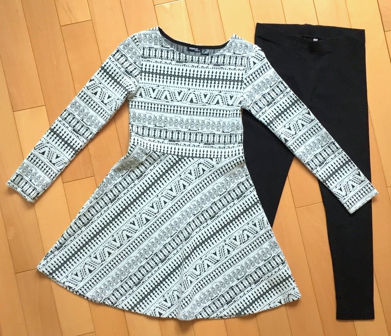 Kompletík šatočiek s dlhým rukávom vo veľkosti 134/140 a čiernych legíniek vo veľkosti 134/140. Vo výbornom stave, bez poškodenia. Čierne legíny 1-2 krát oblečené. Šatočky majú rozmery: dlžka 75cm, pod pazuchami 32-33cm, dlžka rukávov od krku 58-59cm. Dlžka legíniek cca 74cm. Merané v nenatiahnutom stave.