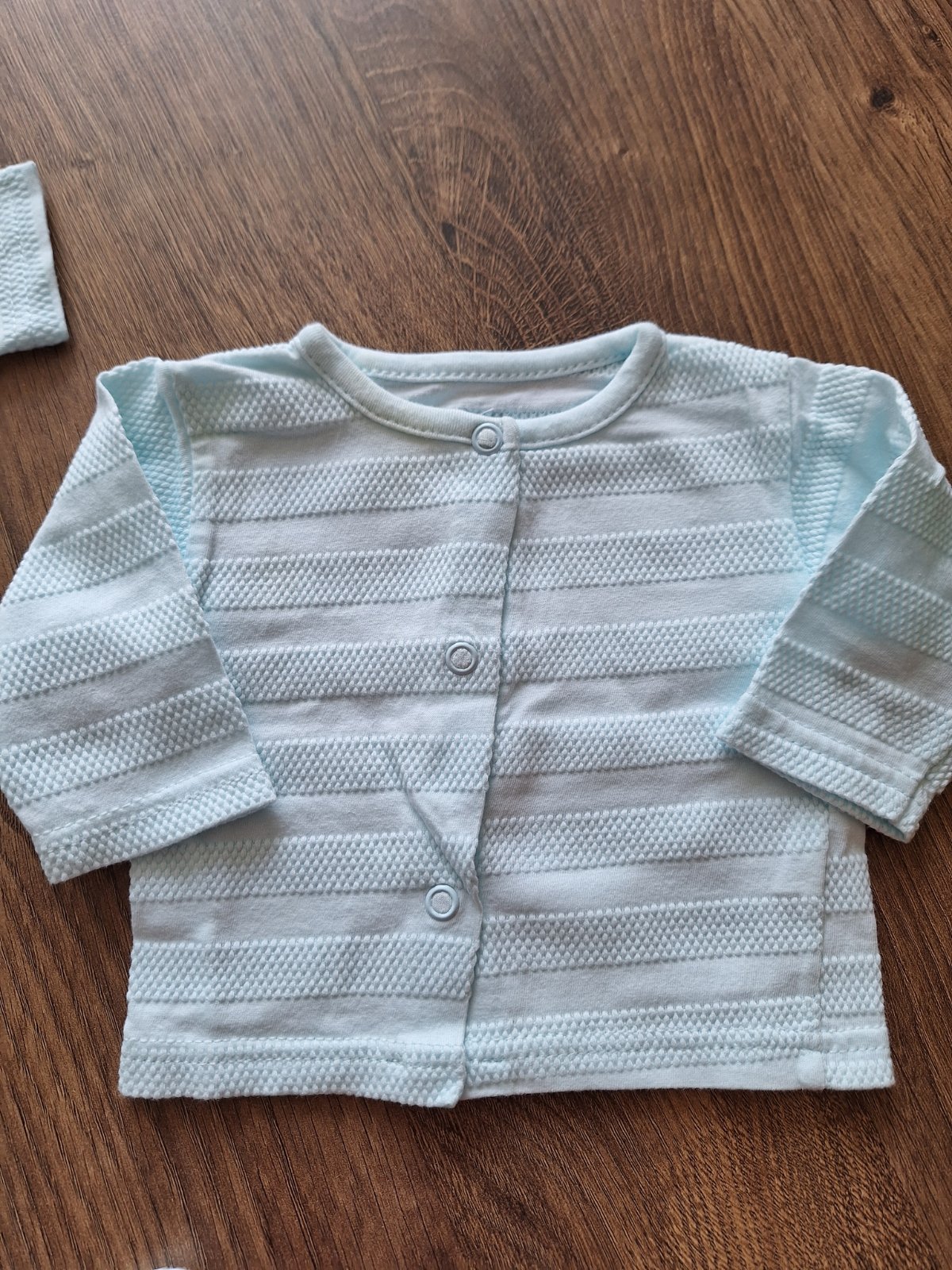 Trojdielna súprava pre bábätko, nohavice, mikina a čiapočka, veľ. 56, je bez poškodenia, len viazanie na čiapke je od výroby zo šnúrky, ktorá sa na koncoch para.