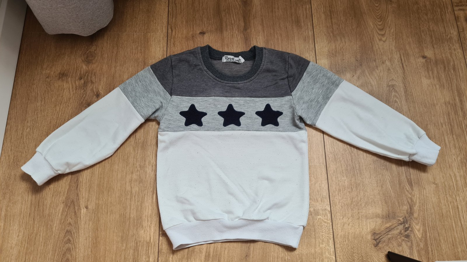 Neutralny set mikín "mama syn" alebo "mama dcera", biely so sedymi pasmi a hviezdami, kupovaný na aliexpresse :) Velkost damskeho svetra je cca S.